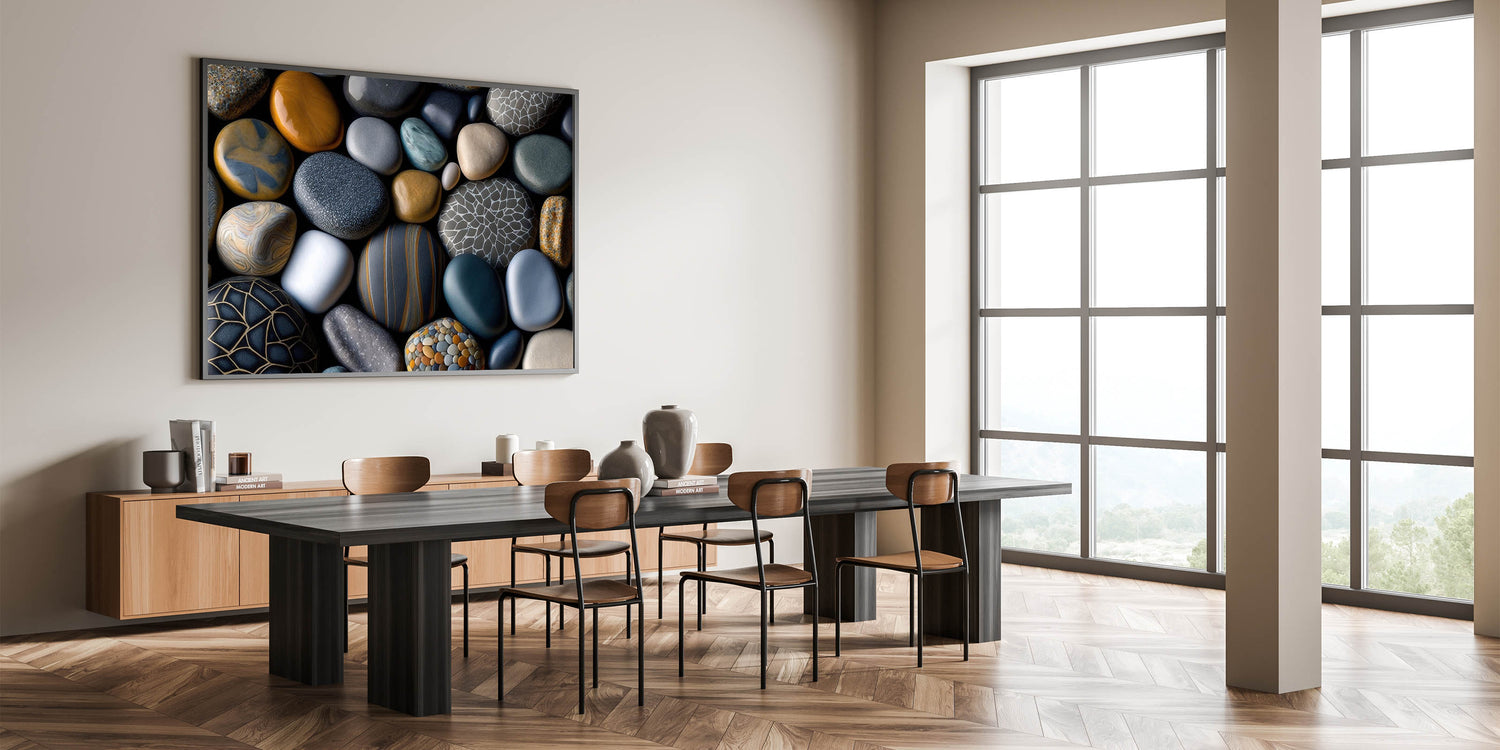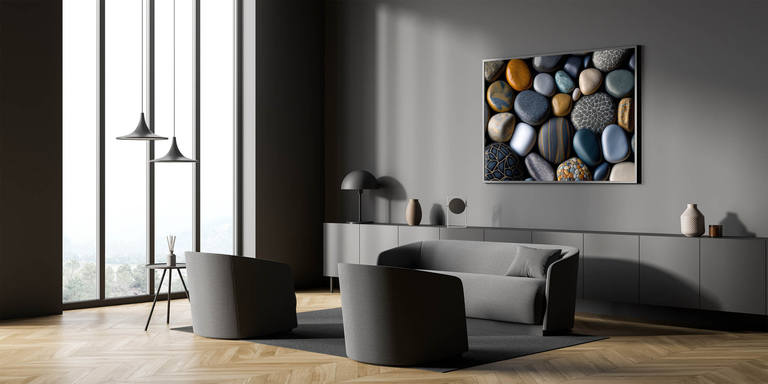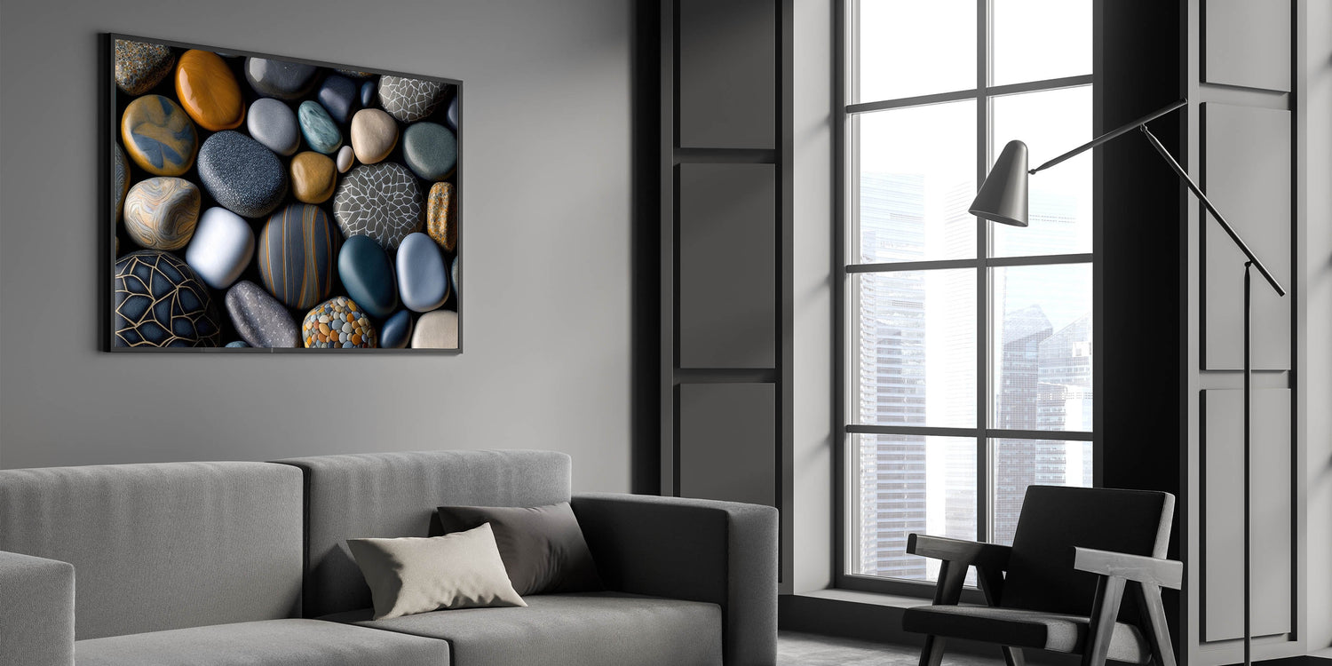 - High-quality rock wall art that showcases the delicate beauty and diversity of natural pebbles.