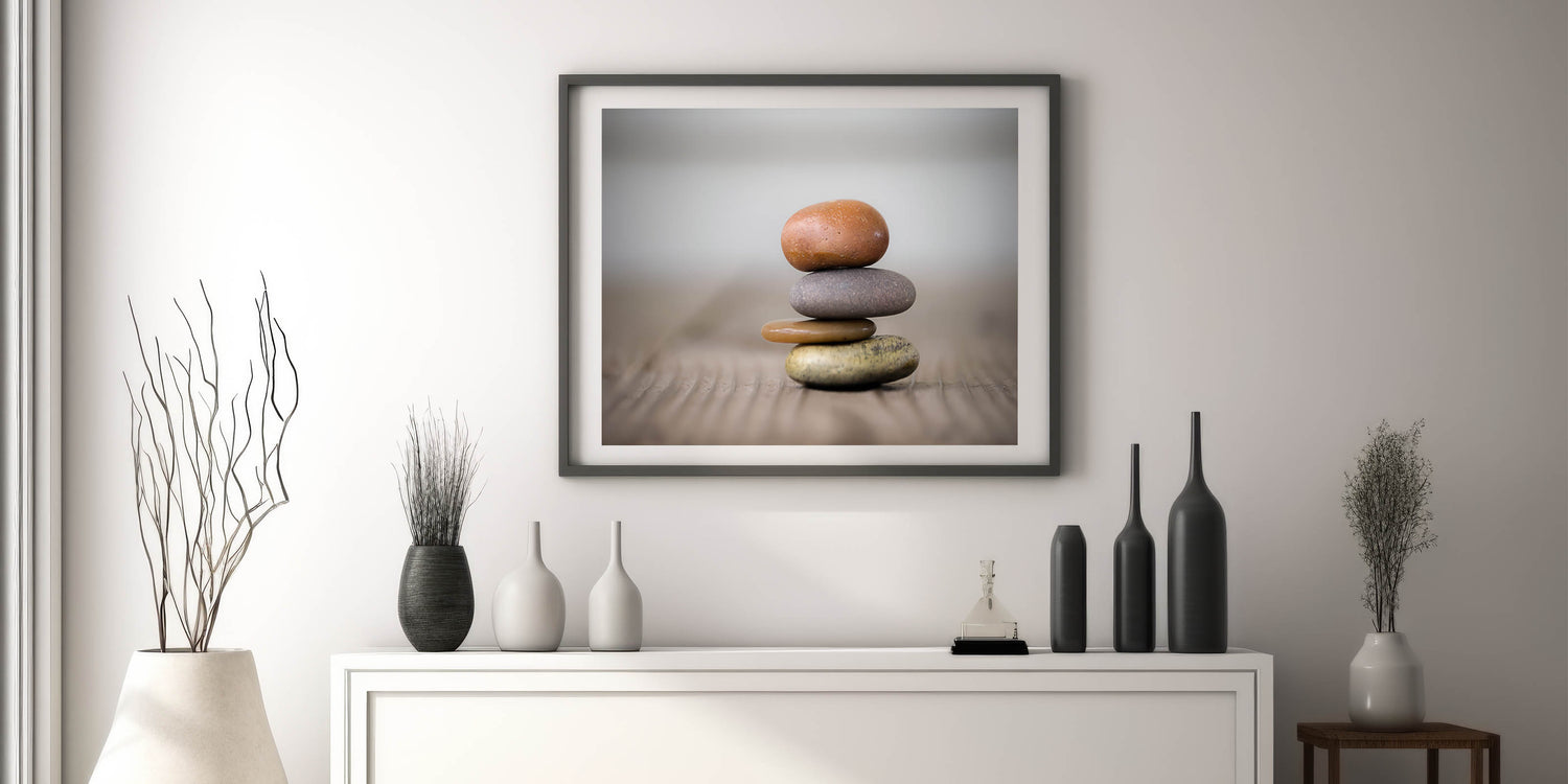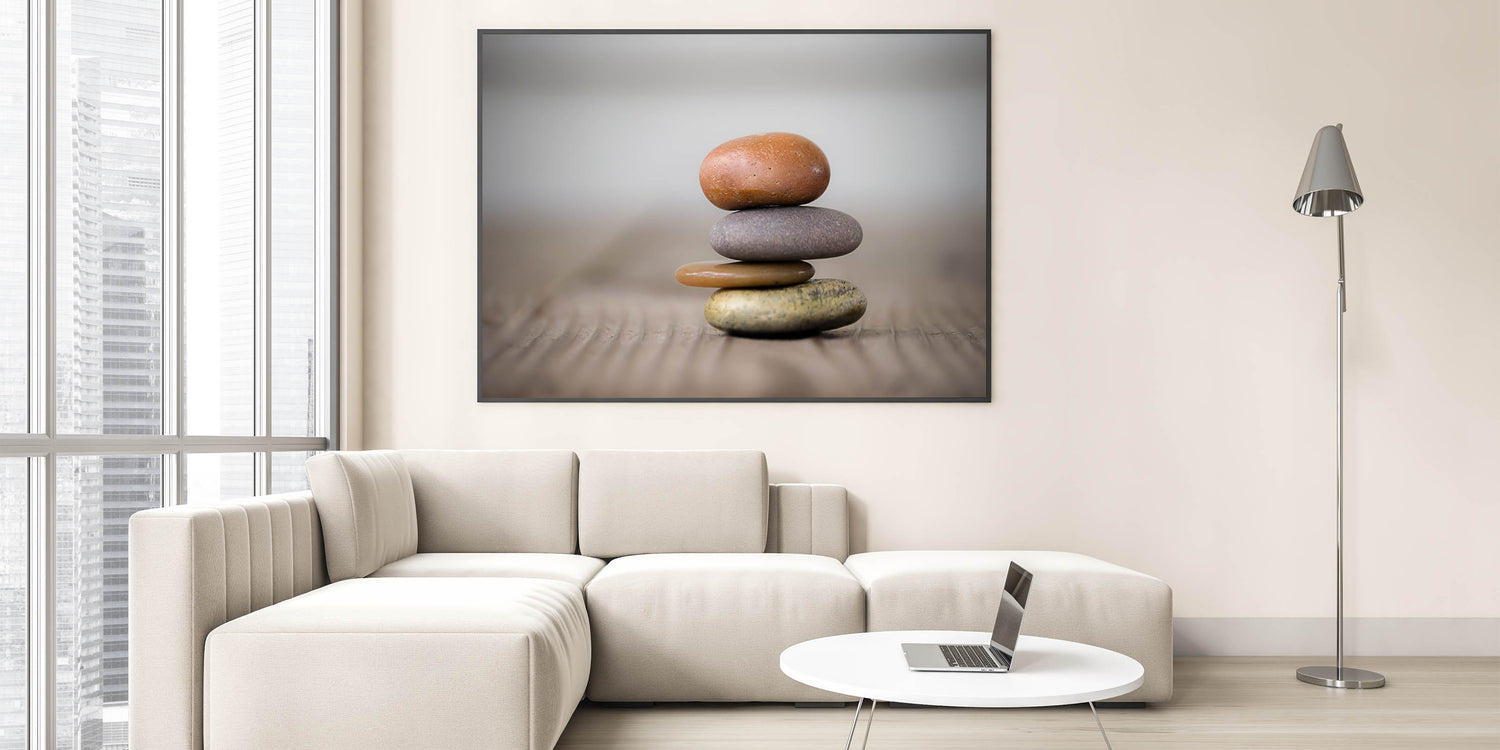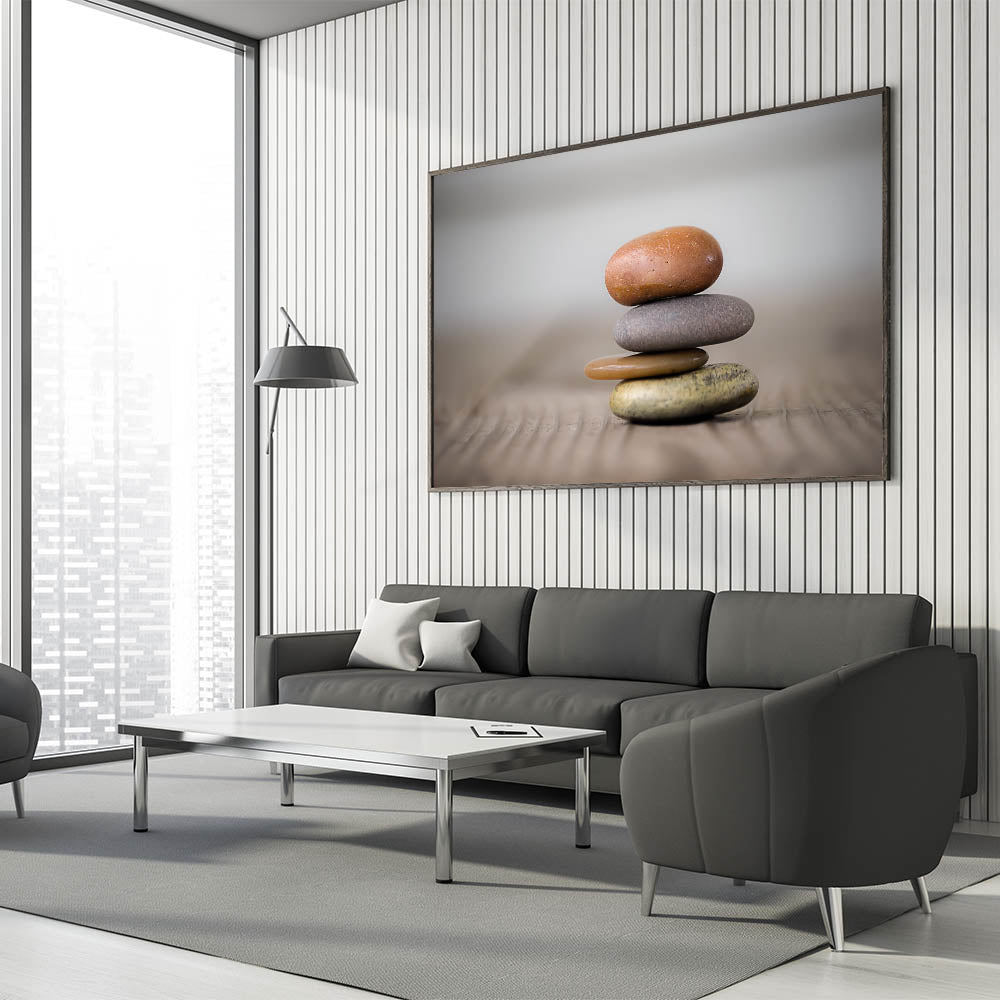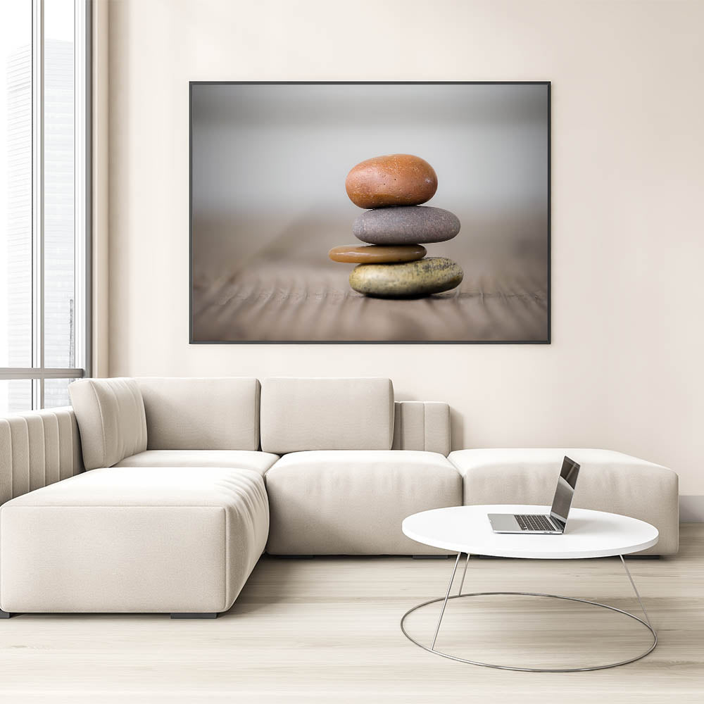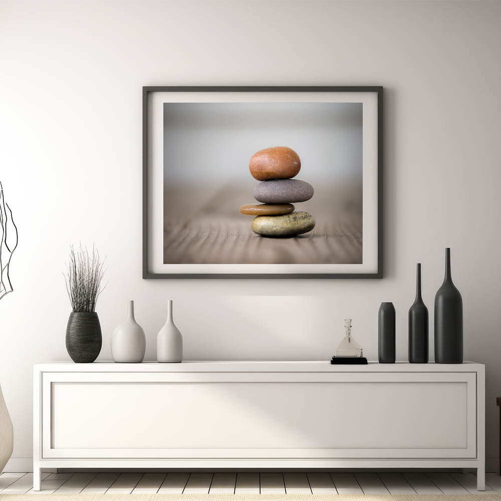 Transform your space with this captivating piece of art featuring a serene stack of smooth rocks, perfectly balanced against a soft, blurred background. This stunning rock formation is a testament to nature's tranquility, bringing a calming and peaceful vibe to any room. The natural tones and textures make this artwork a versatile addition to various decor styles, from minimalist to rustic.