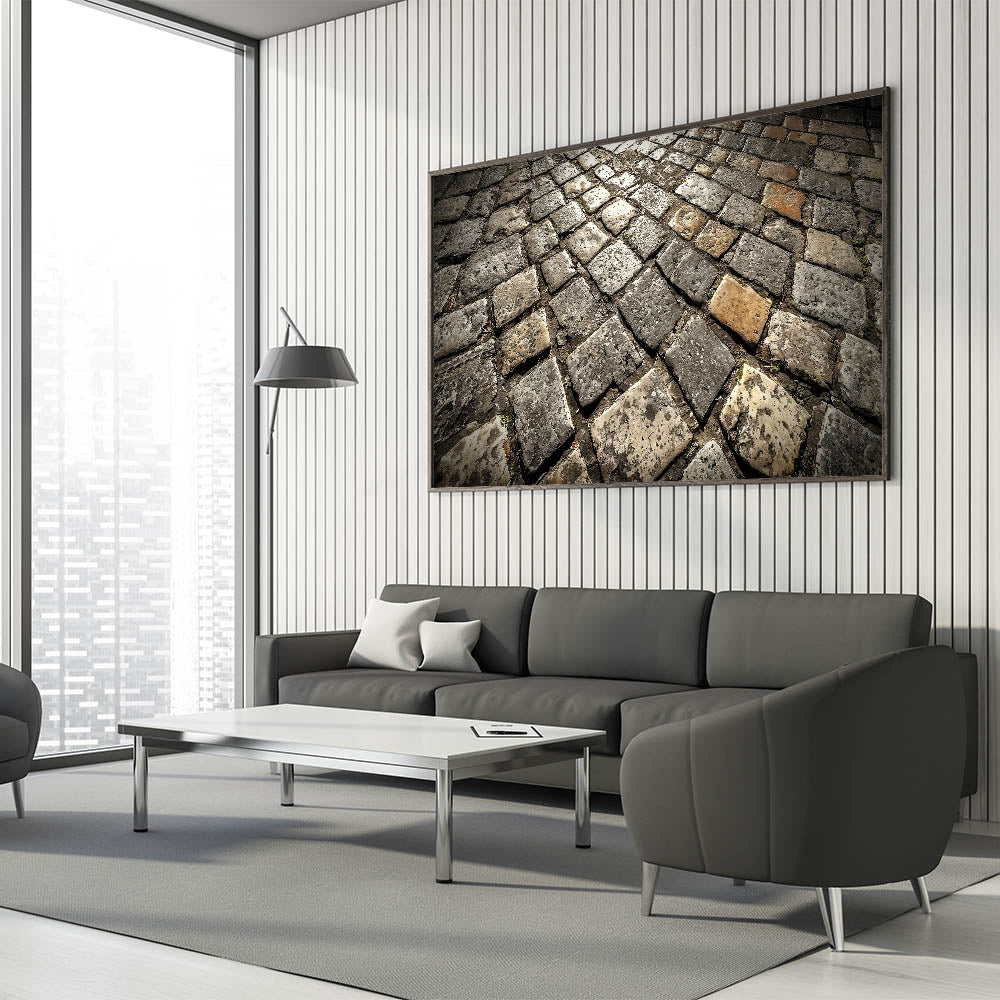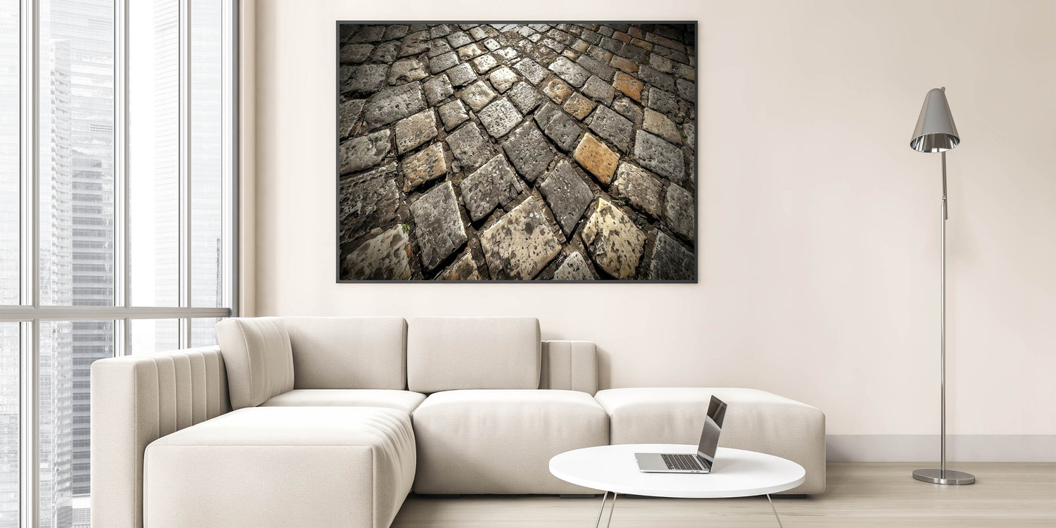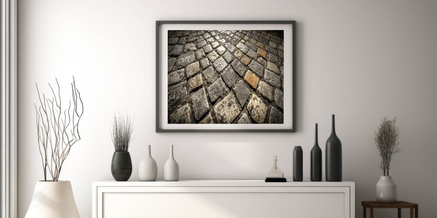 Step back in time with this Ancient Rome Art canvas print, featuring the iconic cobblestone streets of Rome. These weathered stones tell the story of Rome’s rich history and transport you to the heart of the Eternal City. Perfect for lovers of Italian Scenery Art and those who appreciate the timeless beauty of Rome's landmarks, this artwork adds texture and depth to any space.