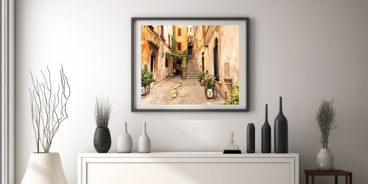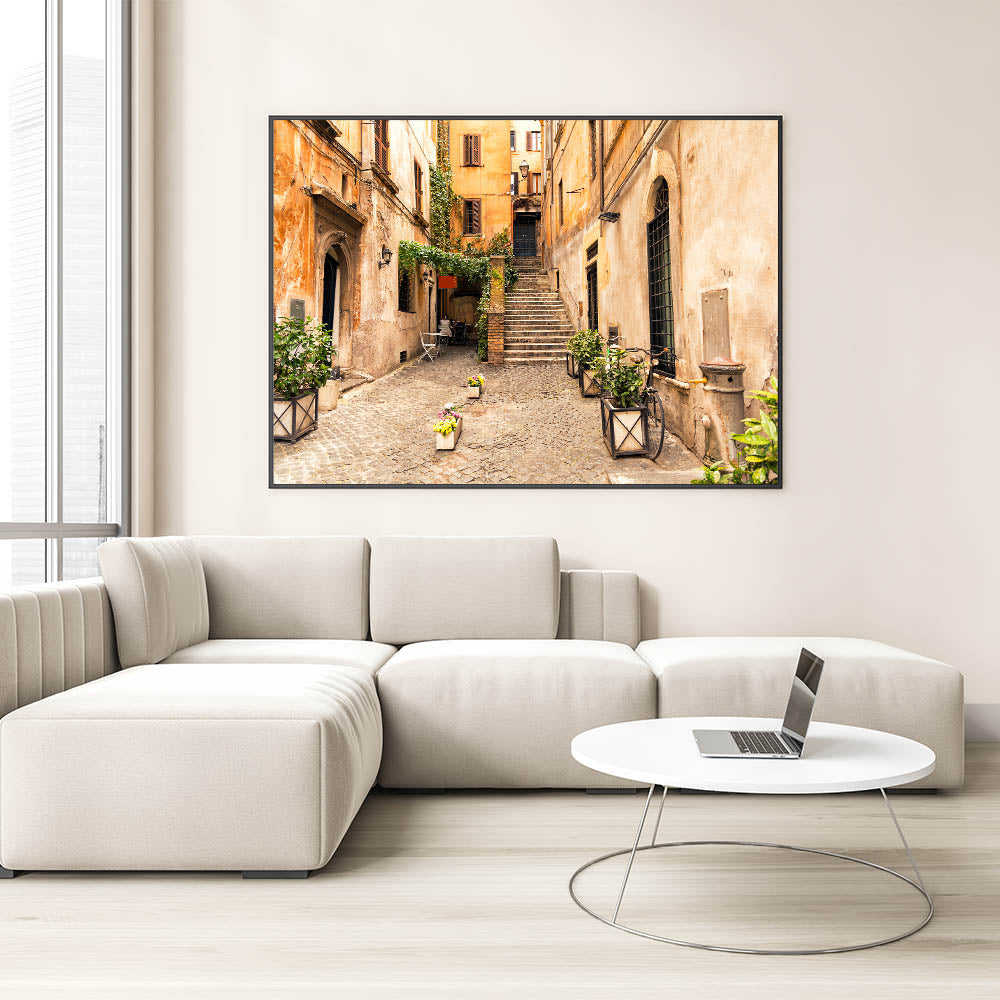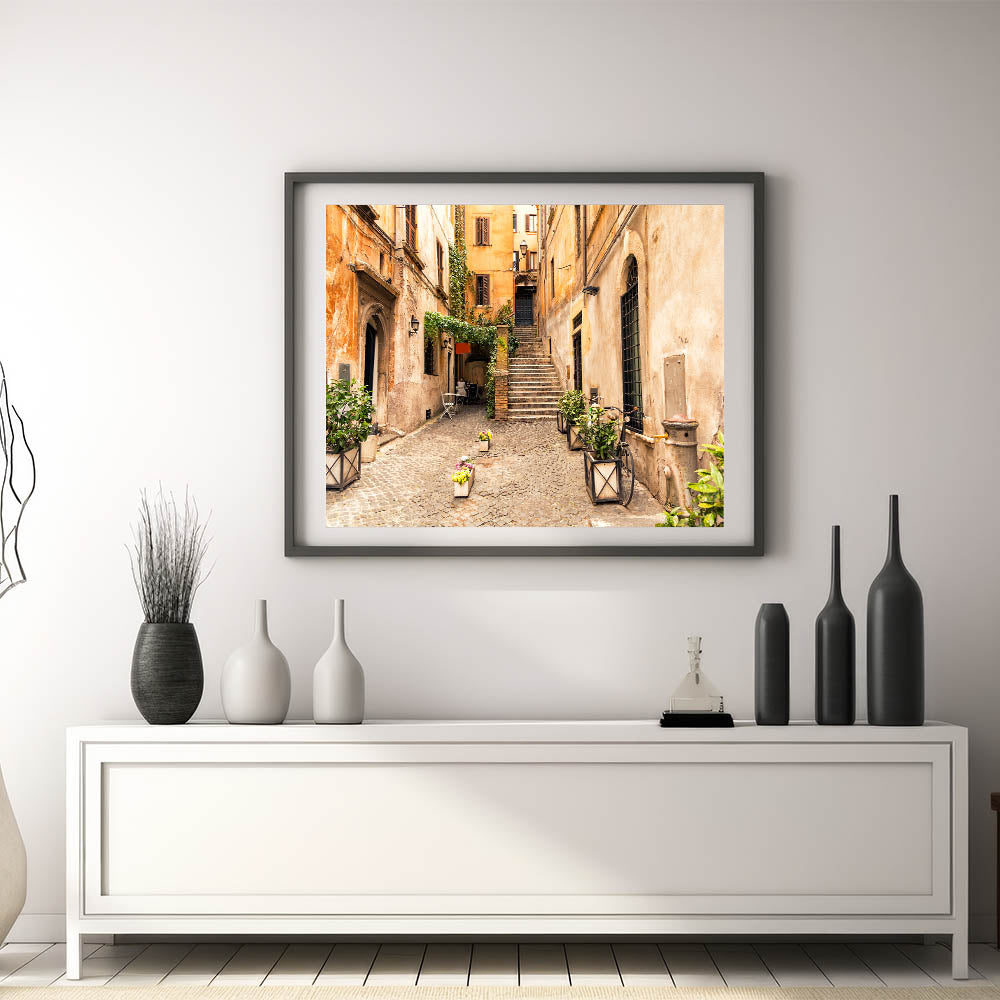 Italian Scenery Art - Charming Trastevere Alleyway Rome Wall Decor