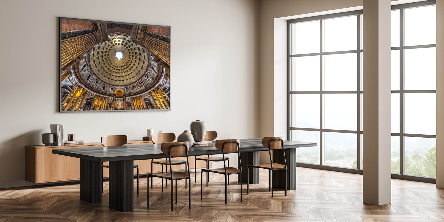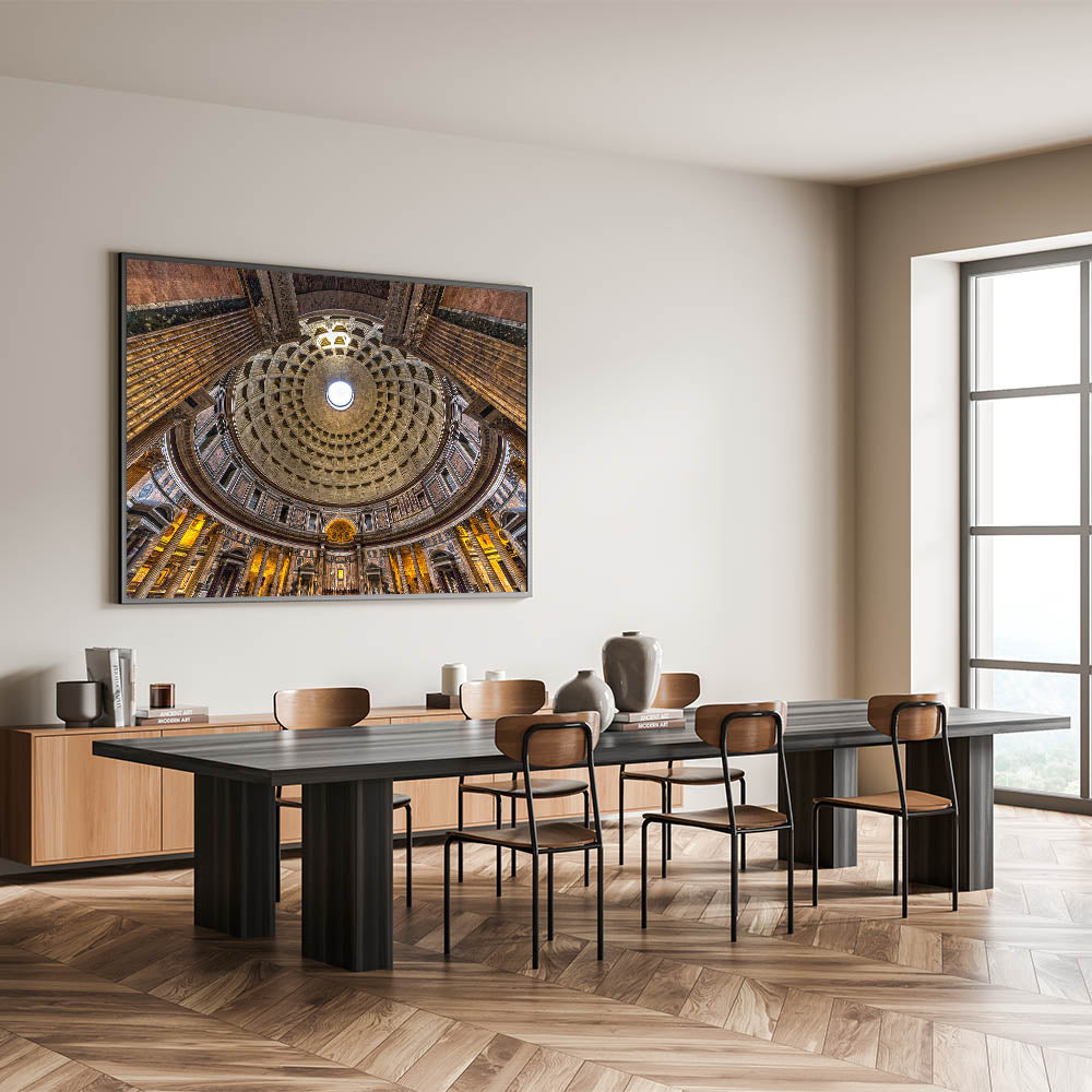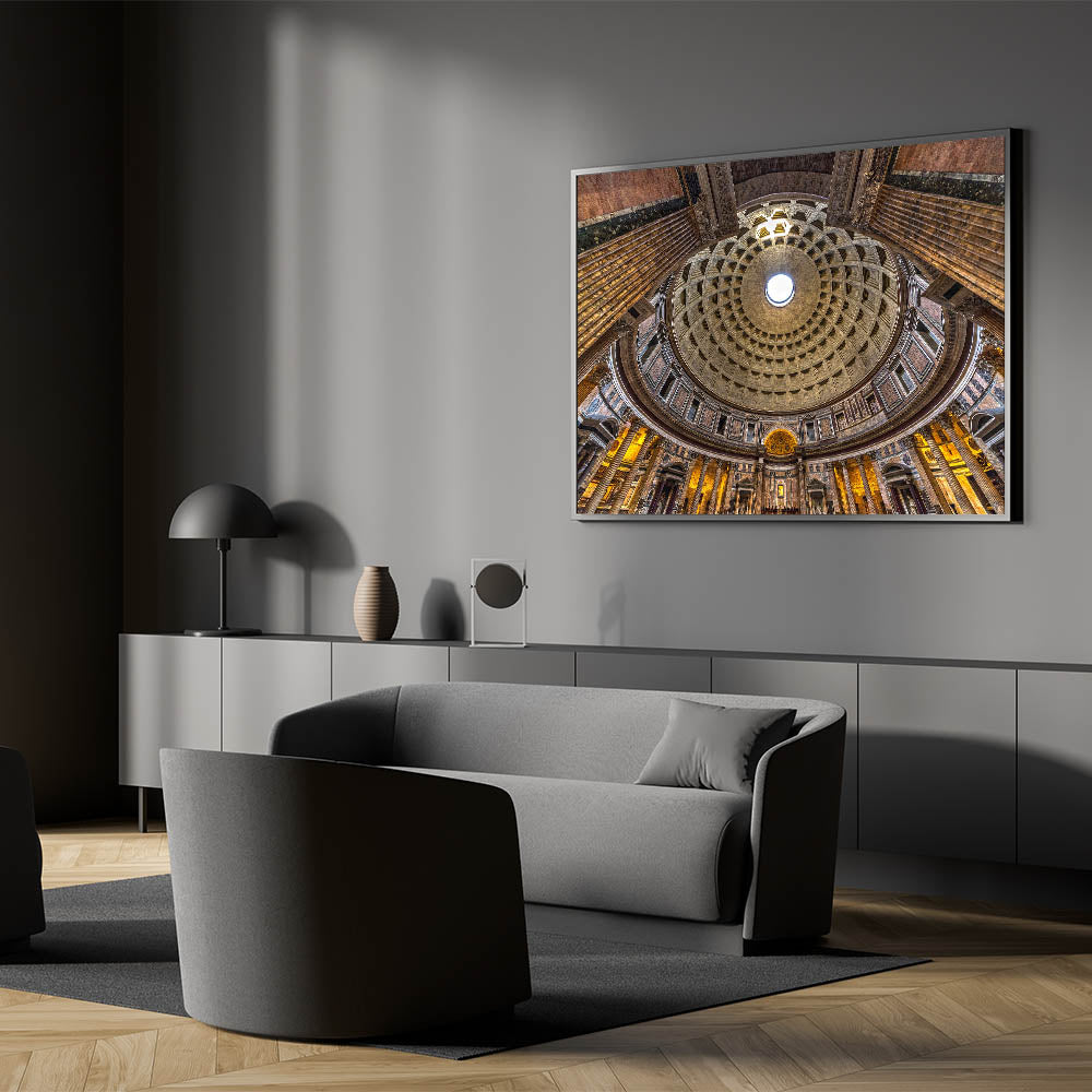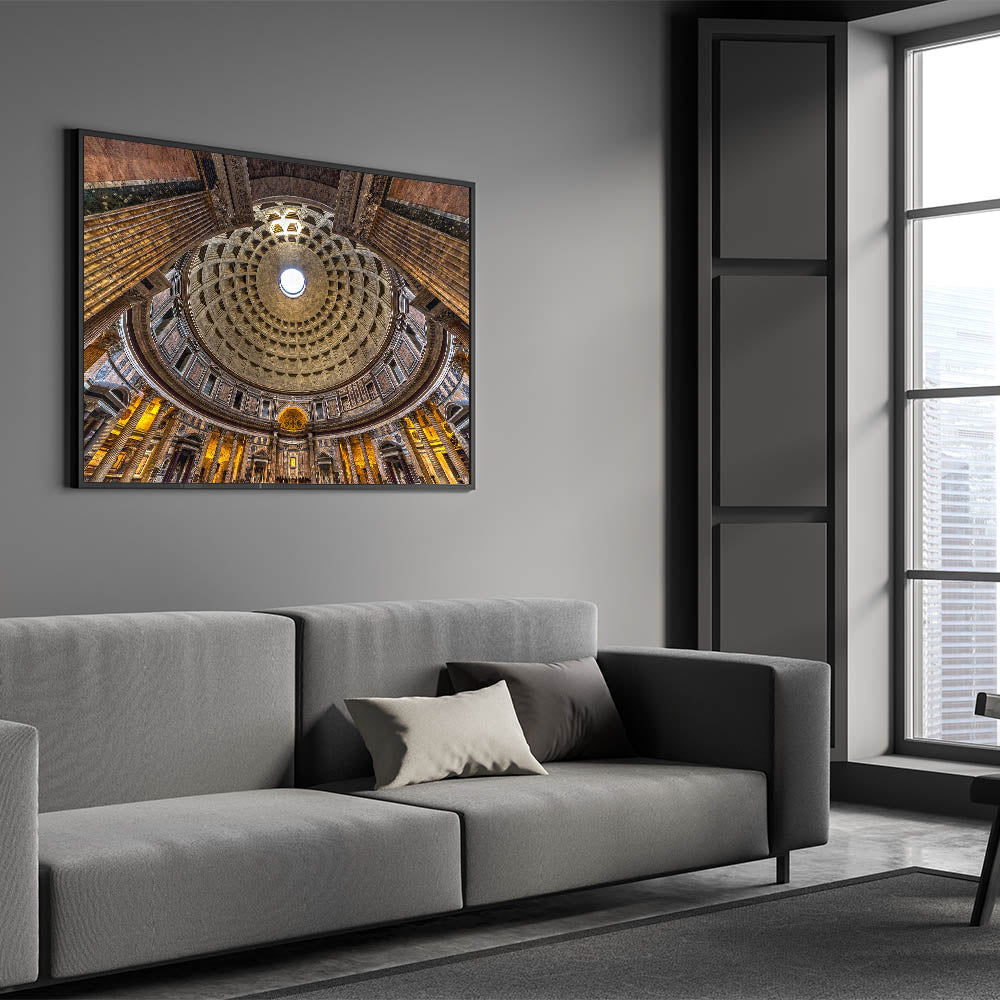 Capture the magnificence of ancient Rome with this breathtaking canvas print of the Pantheon’s interior dome. The intricate coffered ceiling and the central oculus, bathed in natural light, showcase the architectural mastery that makes this Roman landmark so iconic. This piece is perfect for lovers of Rome photography and Italian architecture, offering a timeless view of one of the city’s most important historical structures.