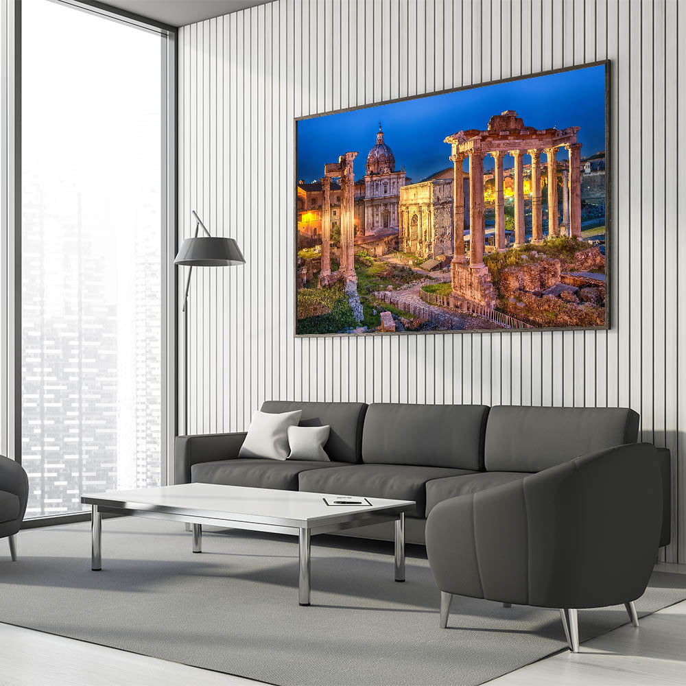 • Vibrant Colors and High-Definition Details: Stunning depiction of the Roman Forum at night, highlighting the ancient architecture.