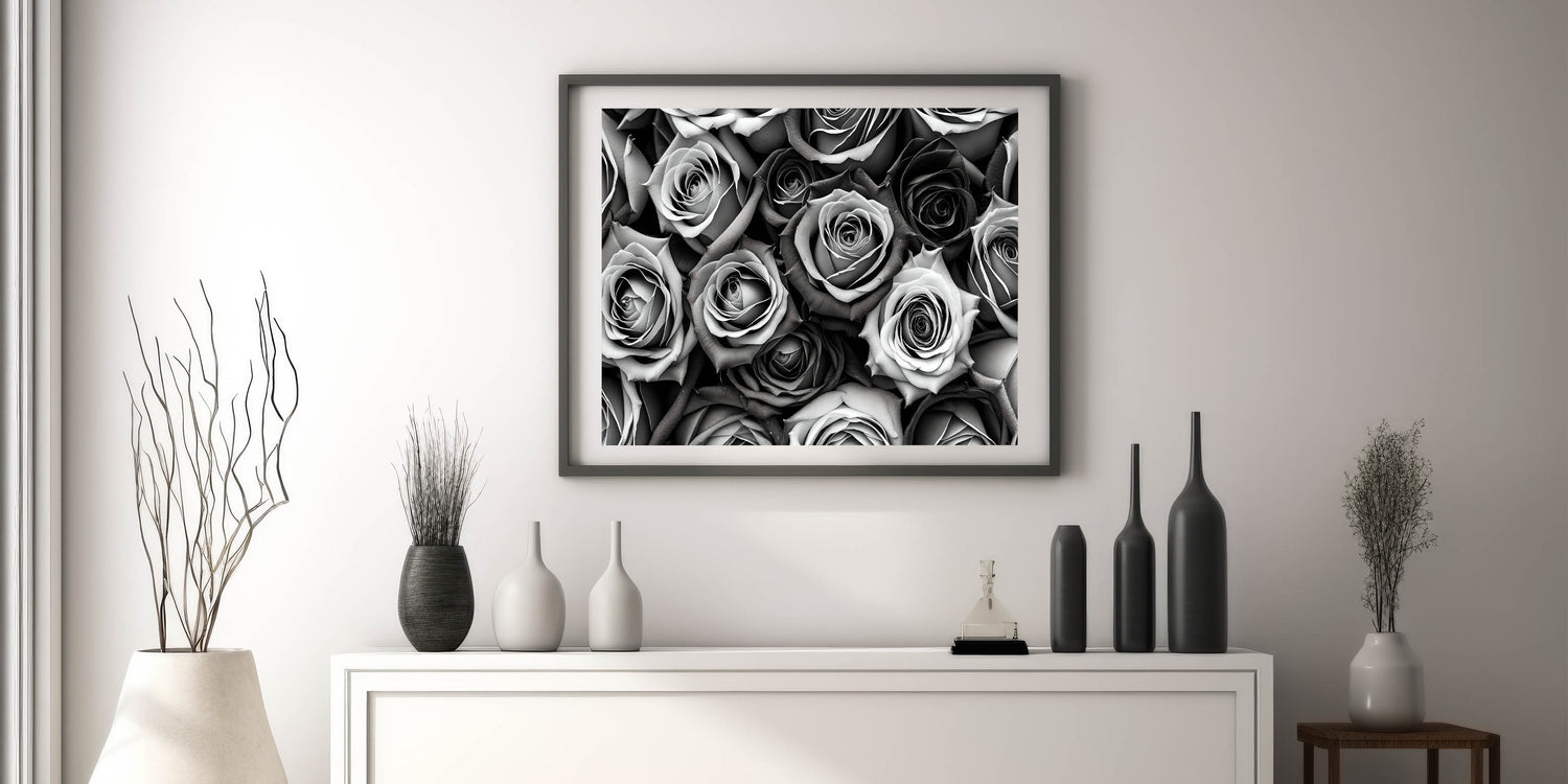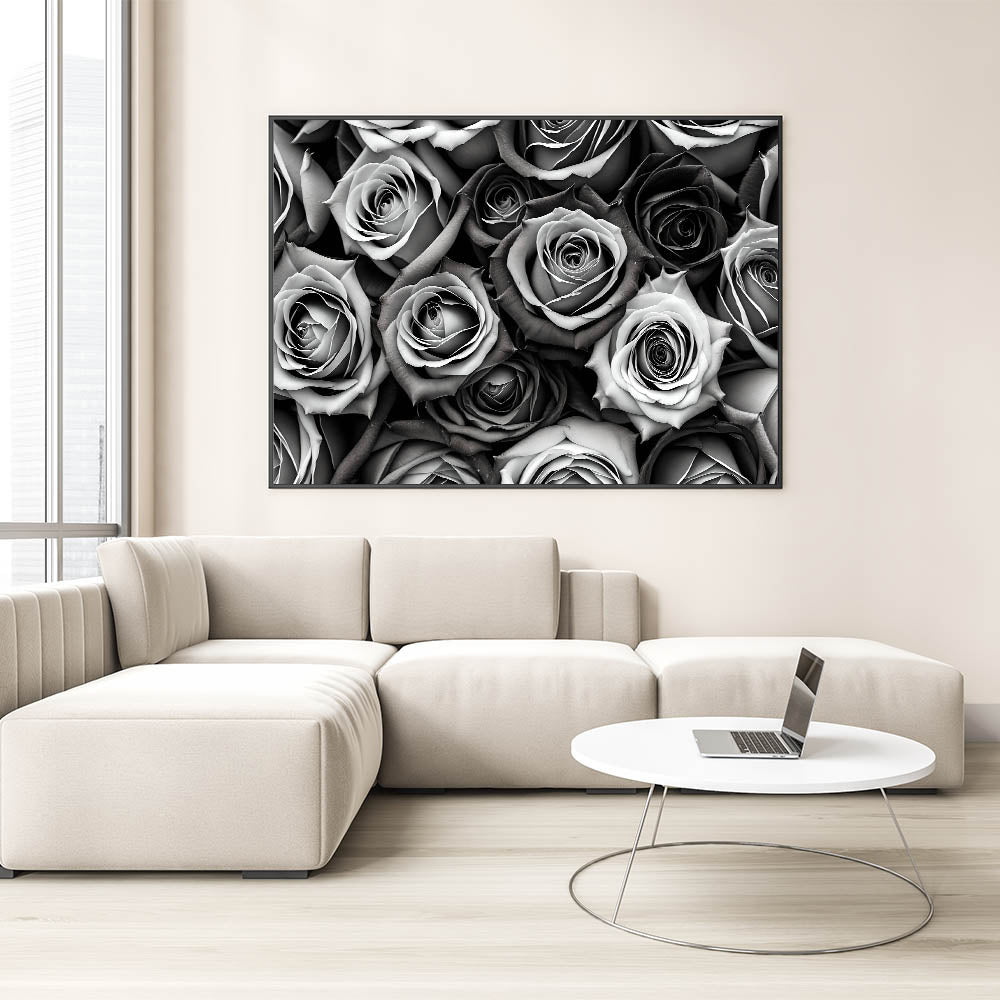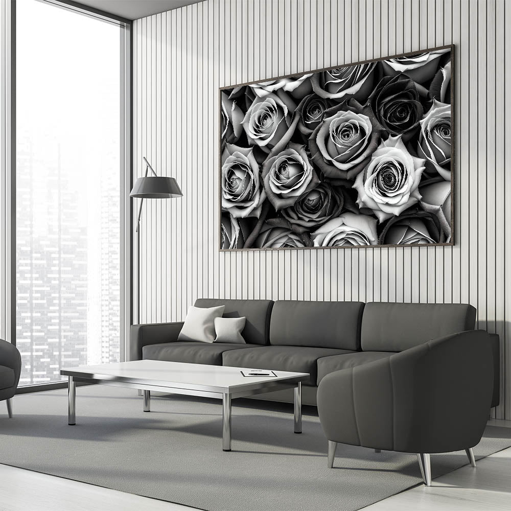 Introduce timeless elegance to your home with this stunning monochrome rose wall art. Featuring a captivating array of grayscale roses, this piece is perfect for those who appreciate minimalist beauty and sophisticated décor. The black, white, and gray tones give the artwork a refined, modern feel, making it an excellent addition to any room, whether you prefer contemporary or traditional styles.