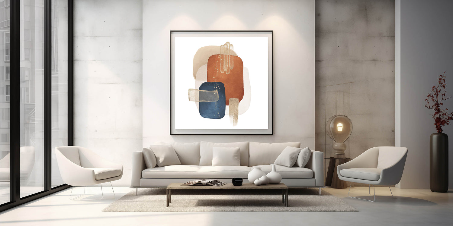 Abstract Geometric Framed Art – Minimalist Wall Art in Earth Tones