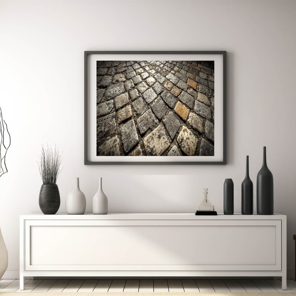 Step back in time with this Ancient Rome Art canvas print, featuring the iconic cobblestone streets of Rome. These weathered stones tell the story of Rome’s rich history and transport you to the heart of the Eternal City. Perfect for lovers of Italian Scenery Art and those who appreciate the timeless beauty of Rome's landmarks, this artwork adds texture and depth to any space.