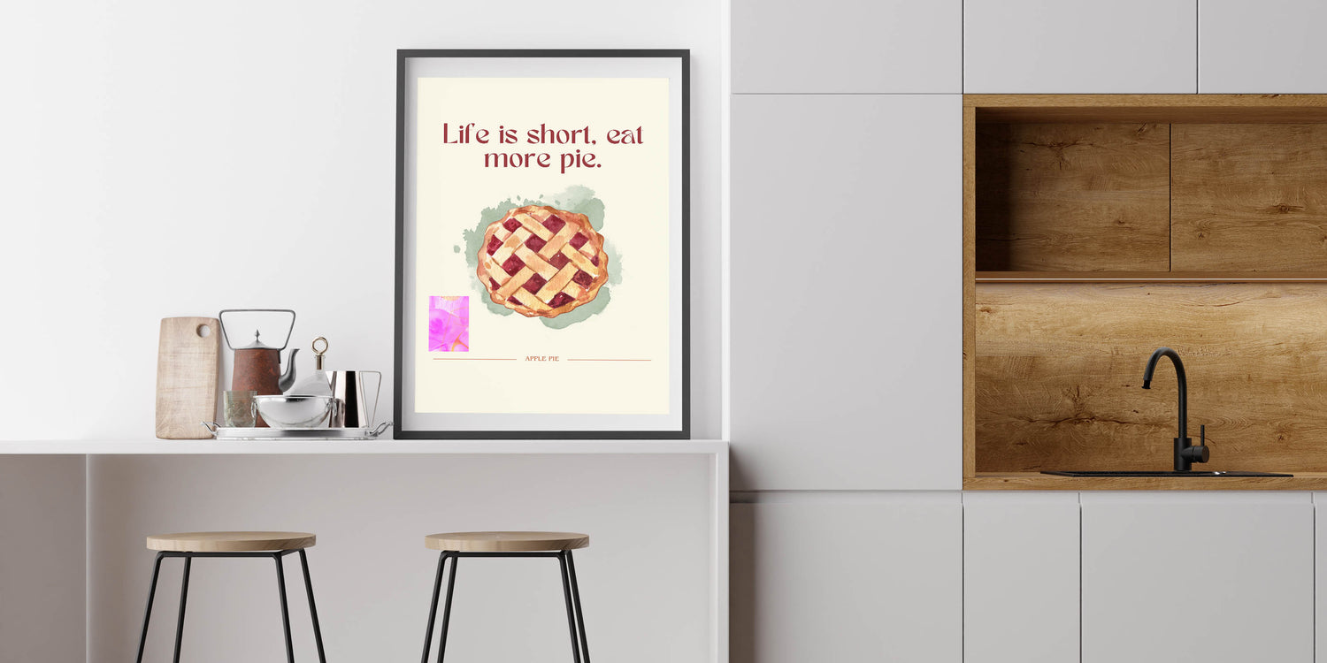Add a touch of warmth and nostalgia to your space with this bakery wall art, celebrating the comfort of delicious homemade pies.