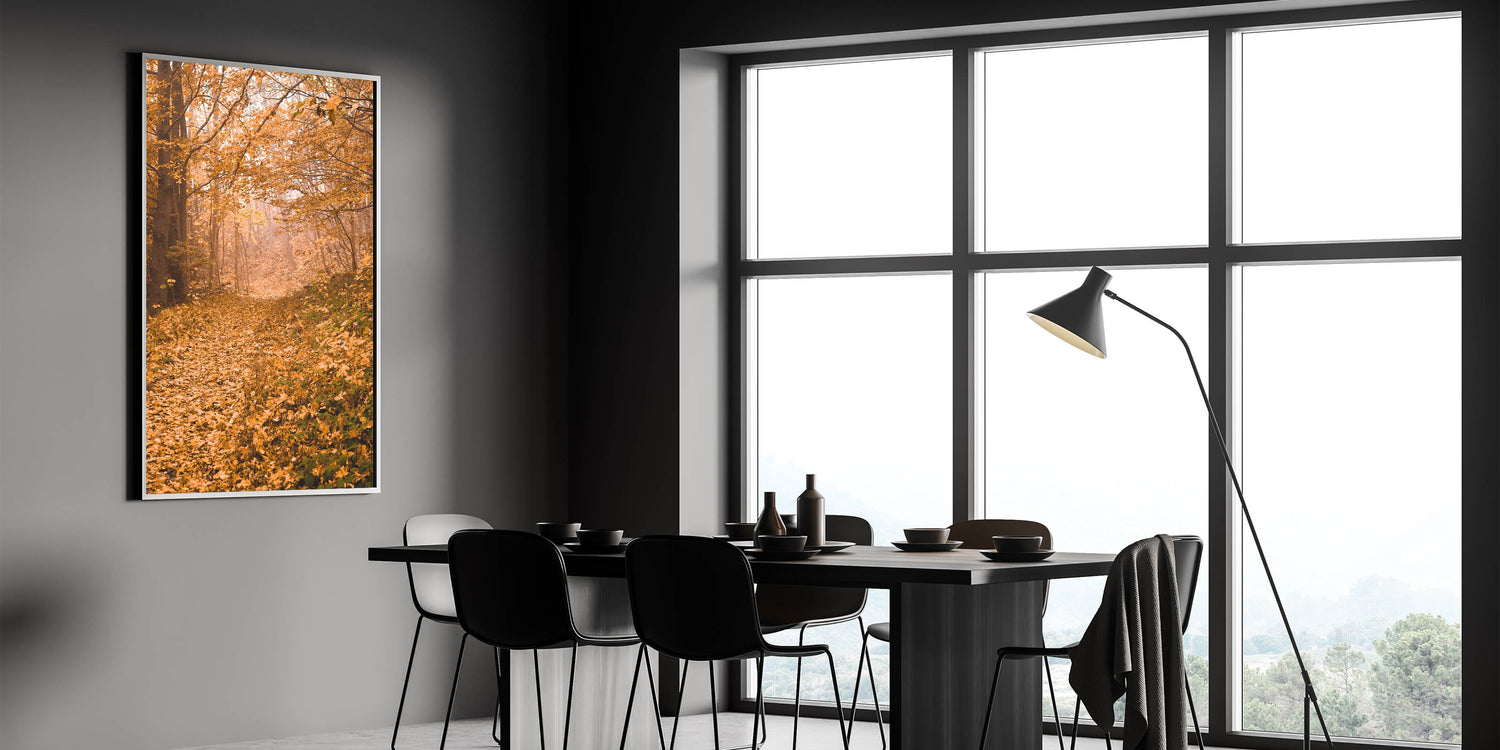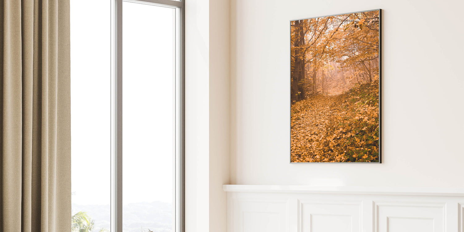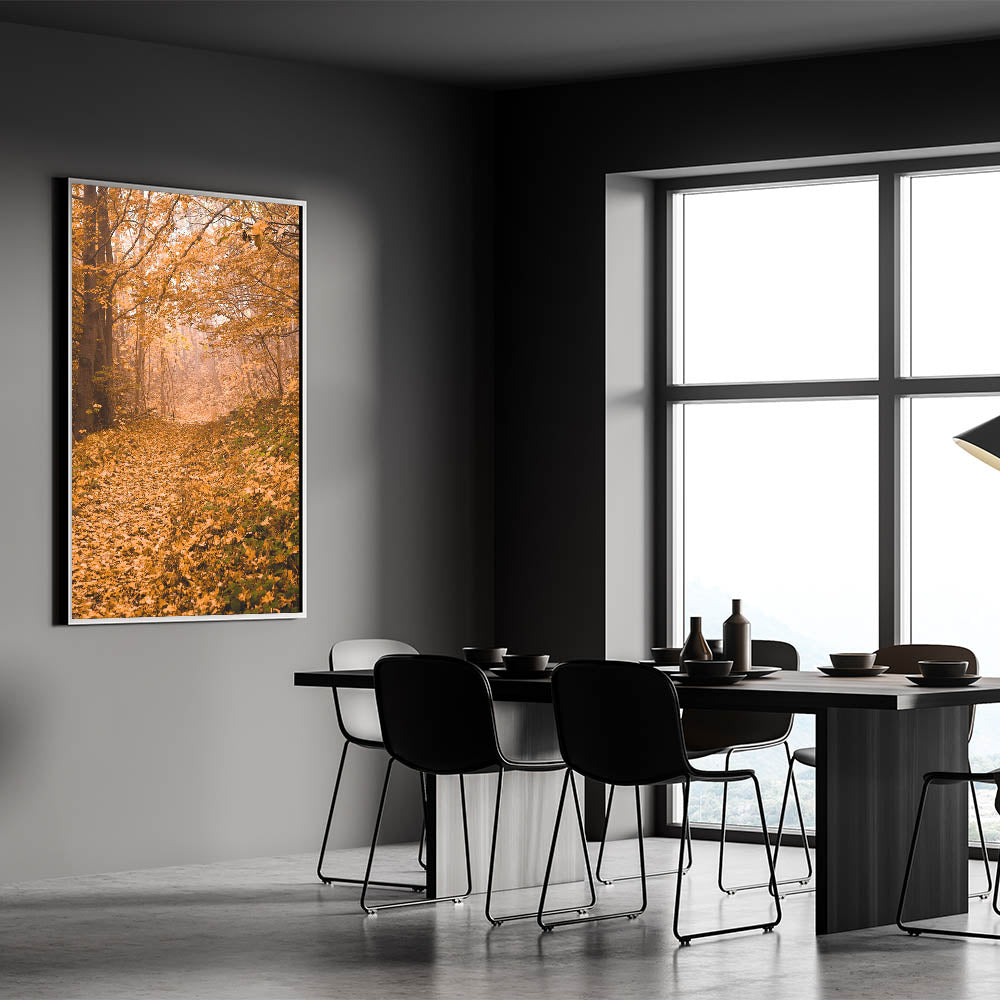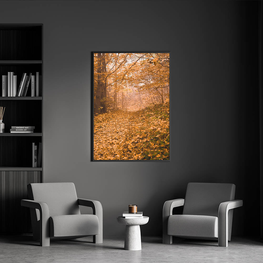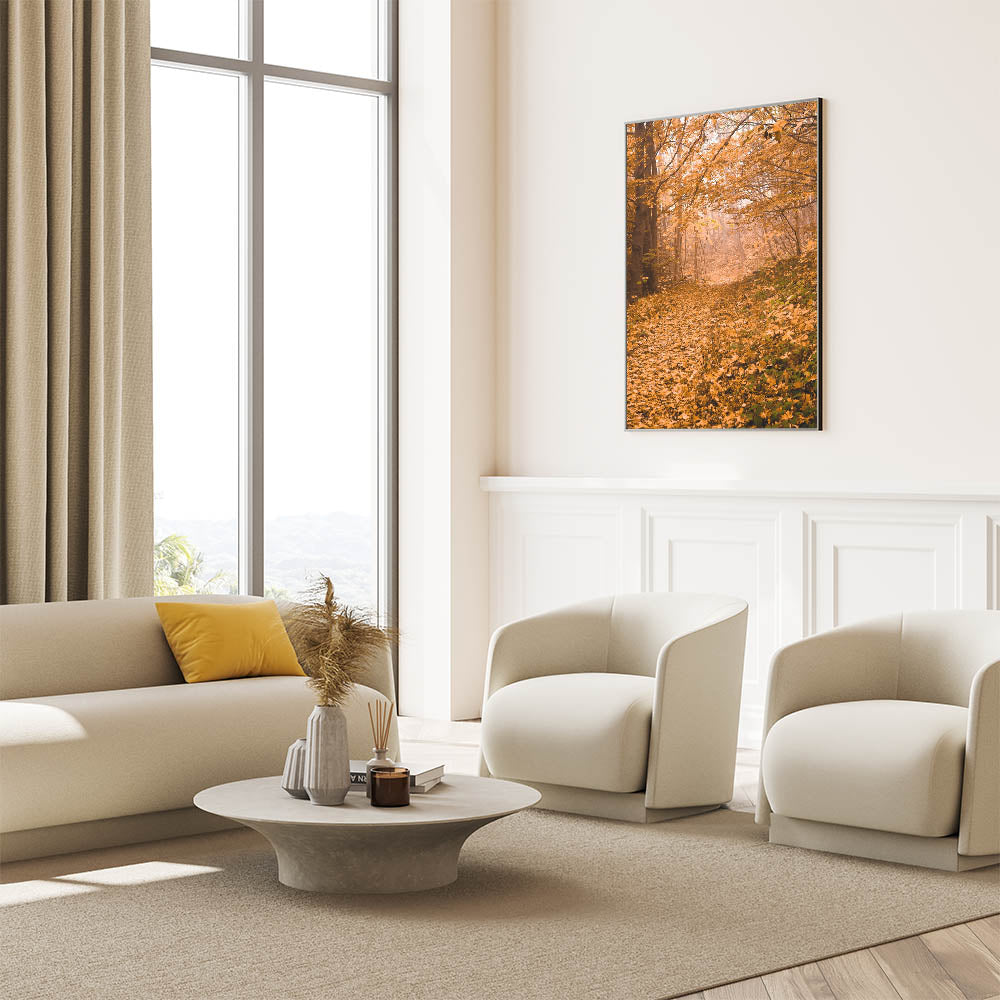 This fall art print invites you to step into the golden hues of autumn, creating a peaceful and cozy retreat in your home. Whether used as seasonal decor or a year-round nature-inspired accent, this autumn canvas art adds warmth and depth to any space.