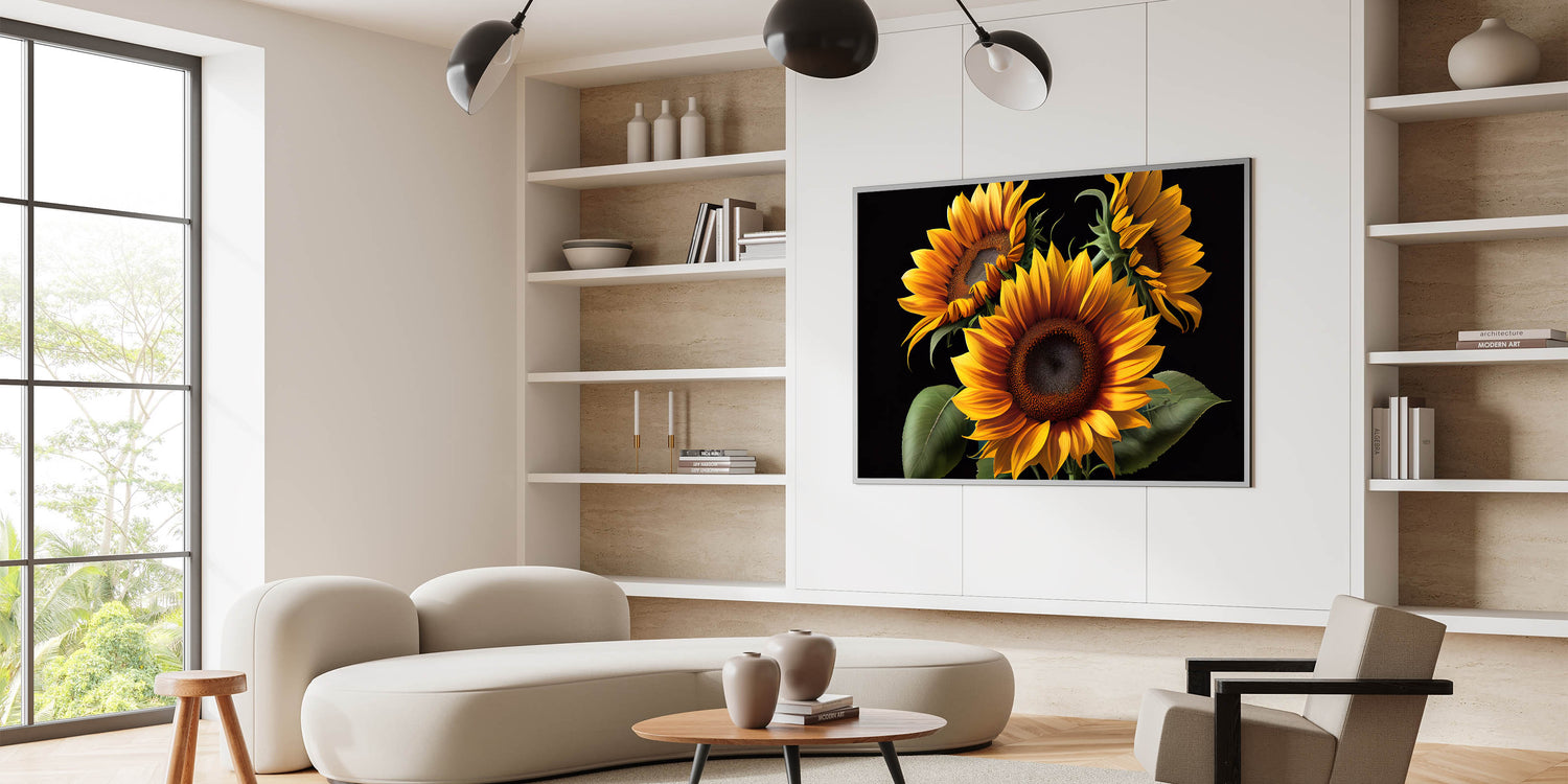 Bold Sunflower Trio Wall Art | Bright Sunflower Canvas Print