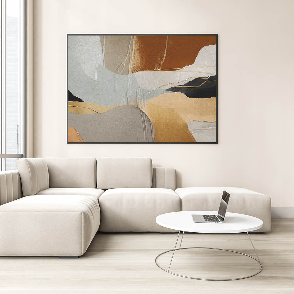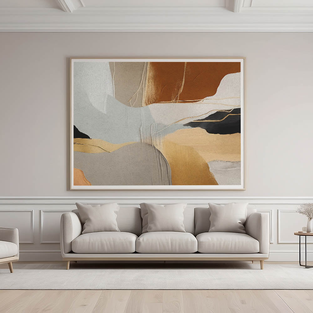 Add a touch of elegance to your interior with this stunning Contemporary Geometric Line Art. This artwork beautifully combines fluid strokes and sharp lines in a warm palette of earthy browns, muted grays, and soft beige tones. Accentuated with hints of black and gold, this abstract piece is ideal for creating a sophisticated atmosphere in any space, whether it's your living room, bedroom, or office.