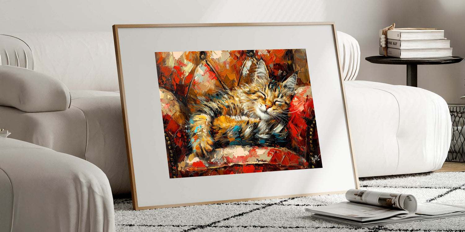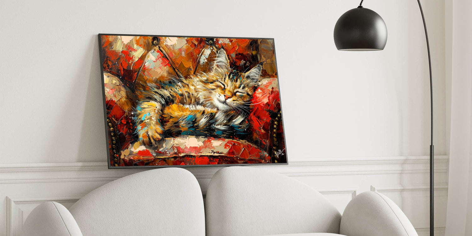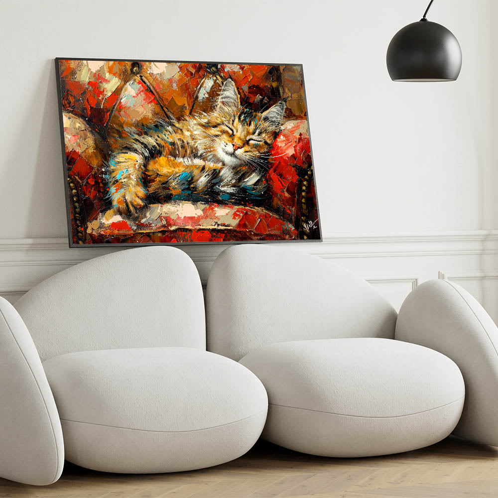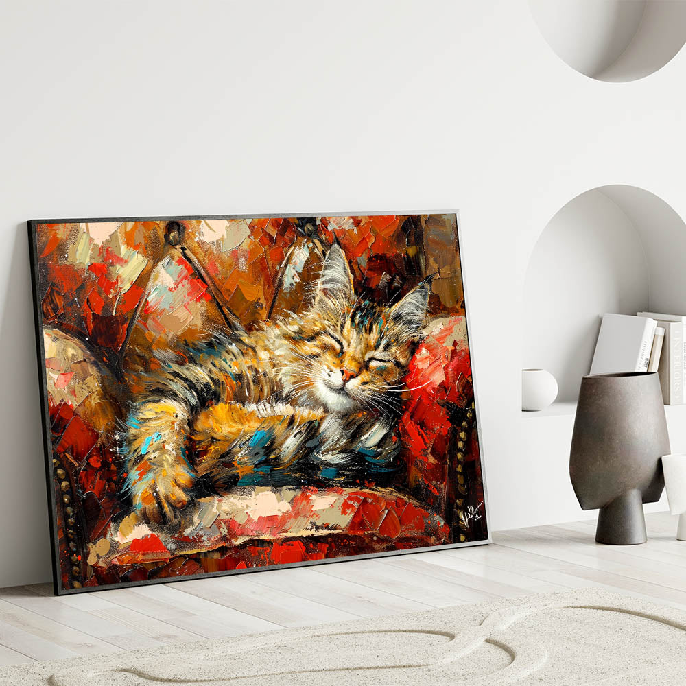 Cozy Sleeping Cat Wall Art - Vibrant Cat Canvas for Warm Home Decor