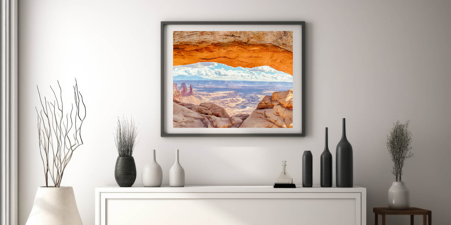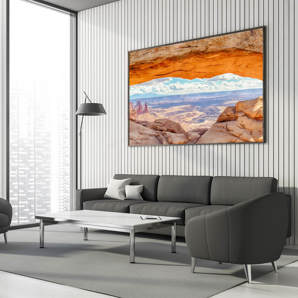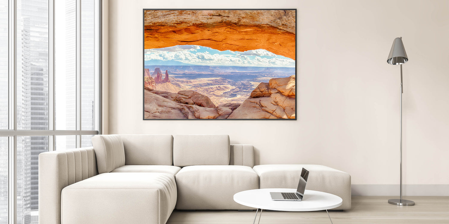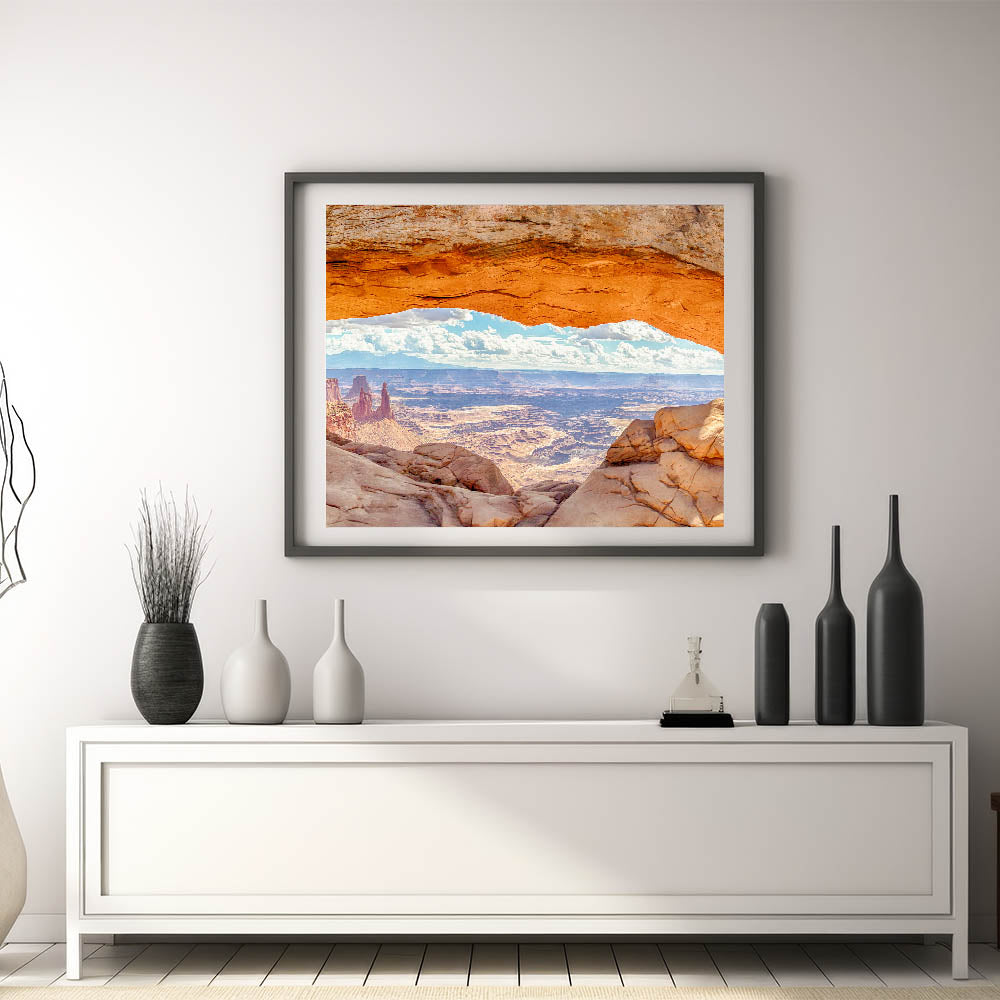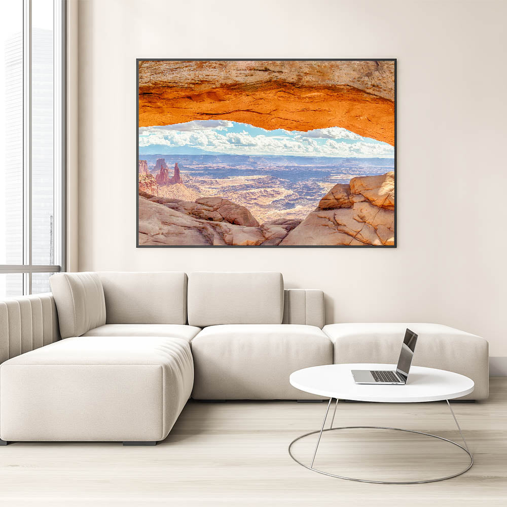 - Vibrant Desert Tones: The warm orange and brown hues of the arch contrast beautifully with the expansive desert vista, making this artwork a captivating focal point in any space.