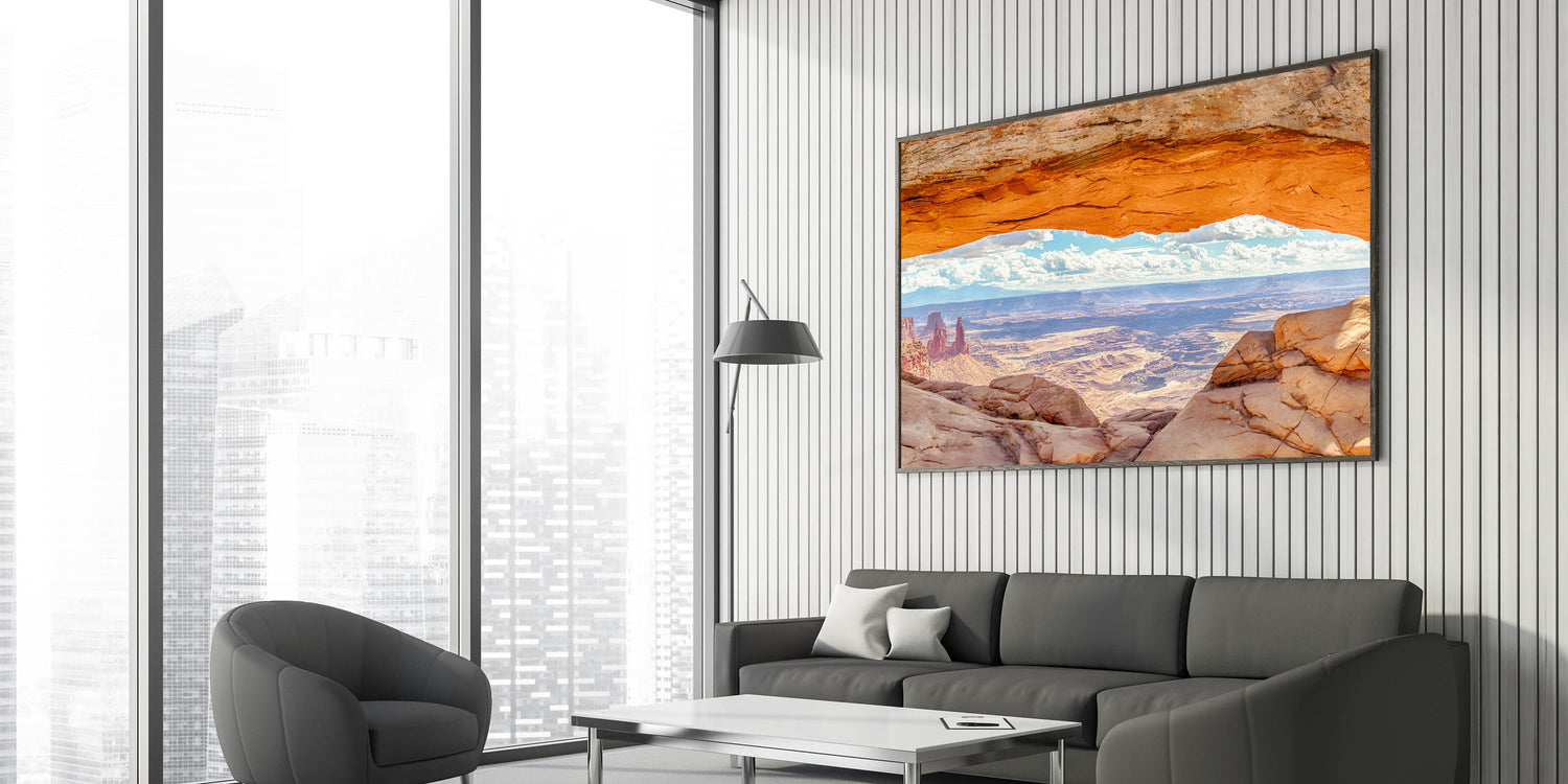 Bring the awe-inspiring beauty of desert landscapes into your home with this Desert Arch Cliffs Wall Art. This stunning artwork captures a natural stone arch framing a vast and intricate desert landscape, bathed in warm sunlight. Perfect for those who love the rugged beauty of the desert, this piece adds a touch of natural wonder to any room.