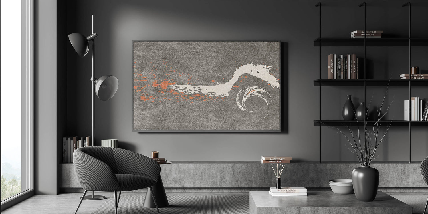 Dynamic Abstract Art with Flowing Brush Strokes on Canvas