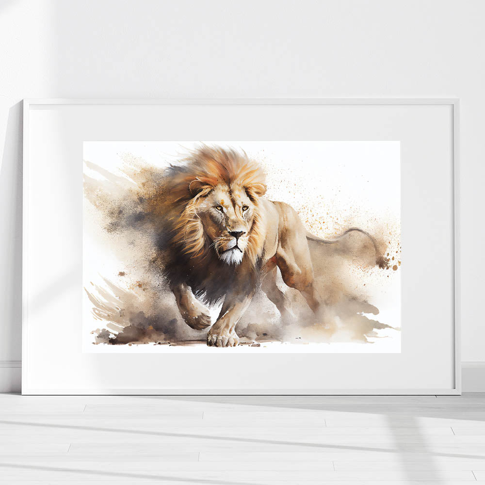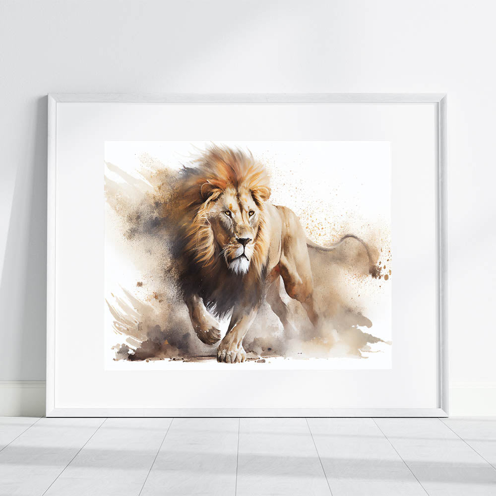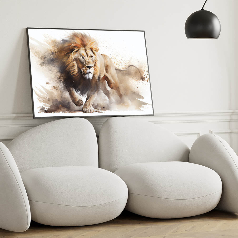 Bring the raw energy and power of the wild into your living space with this Dynamic Lion Wall Art. This piece captures the lion in mid-motion, exuding strength and determination, making it a perfect centerpiece for any room. The vibrant hues and textured brushstrokes convey the intensity of this magnificent animal, making it ideal for anyone looking to add a bold statement to their decor with Safari Animal Art.