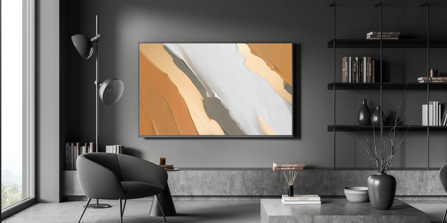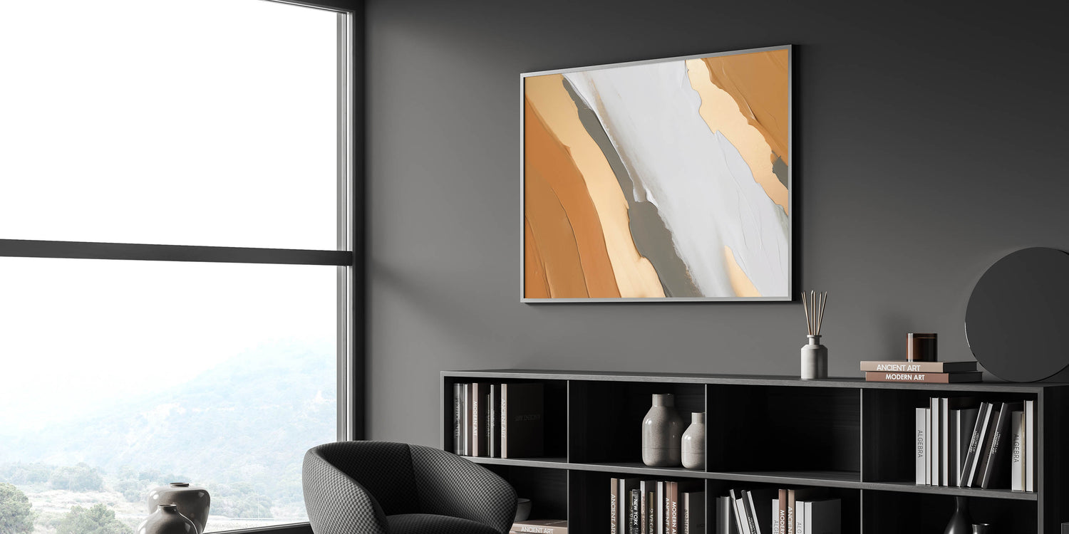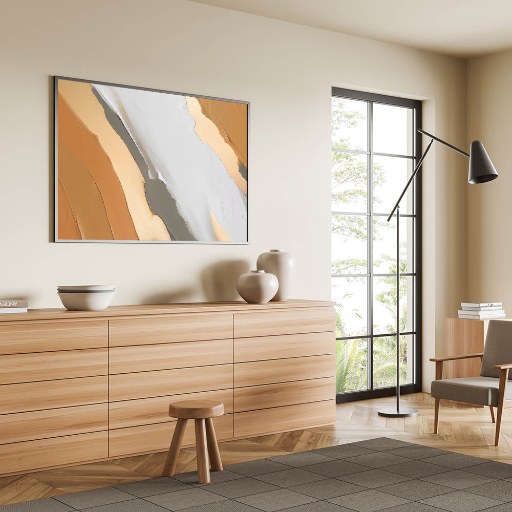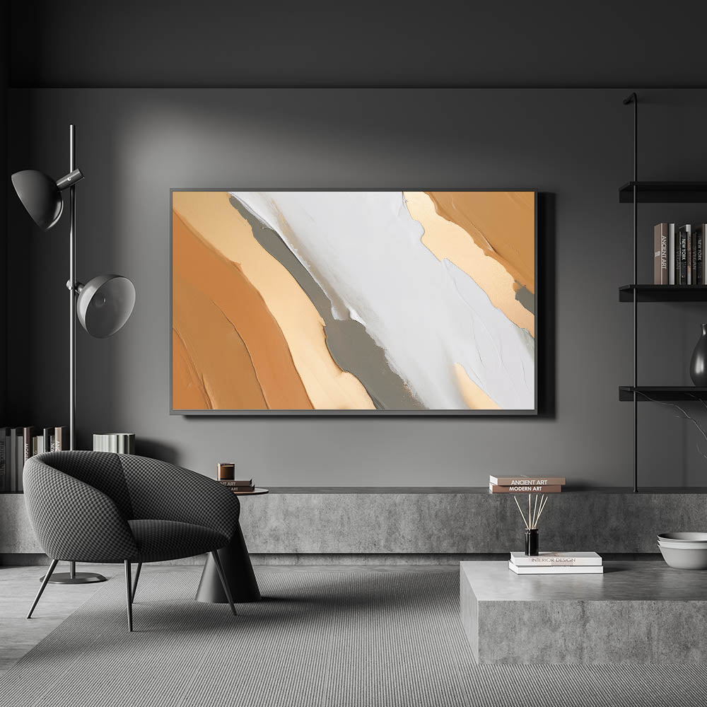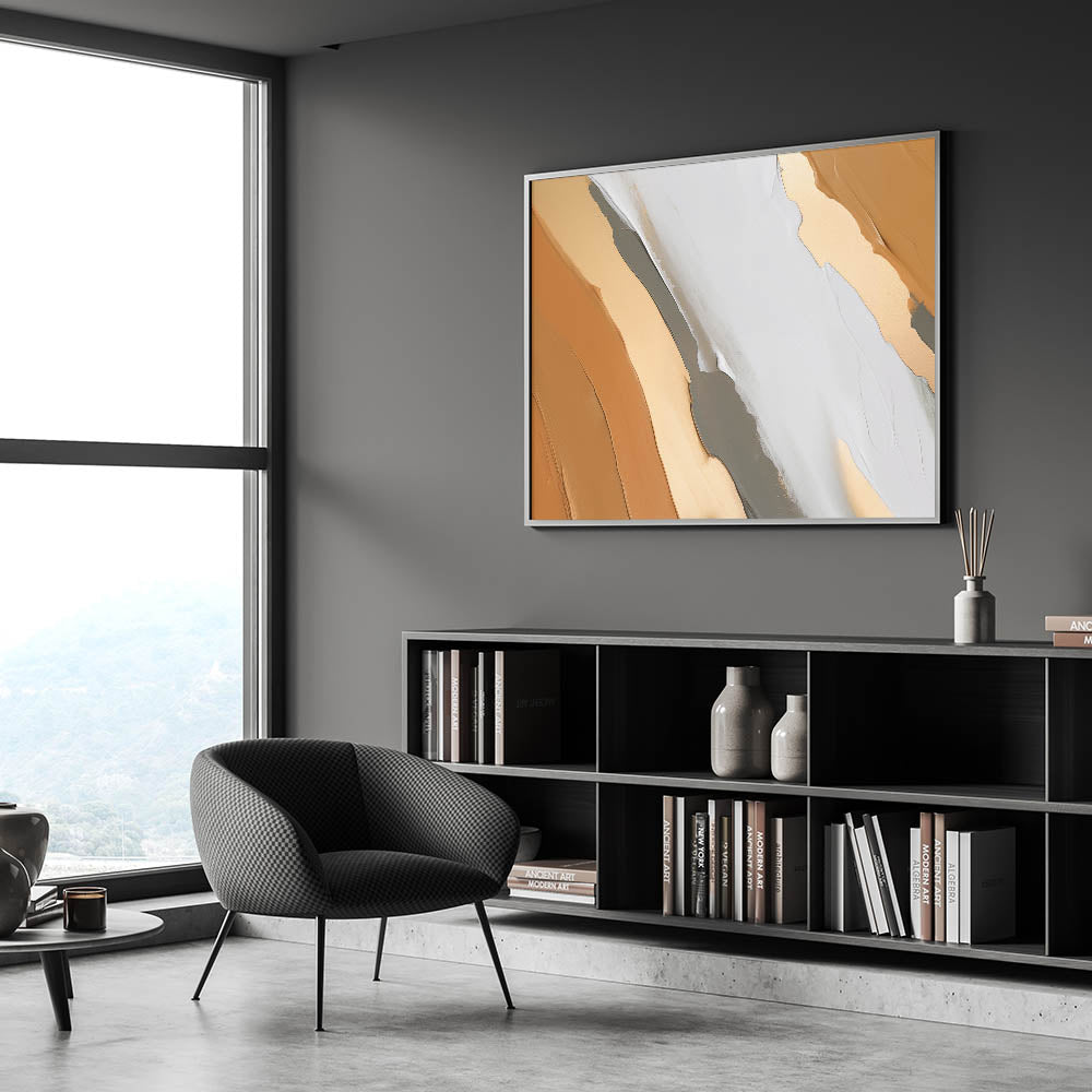 • Warm and Inviting Design: The combination of earthy tones and abstract brush strokes creates a cozy and inviting atmosphere in any space.