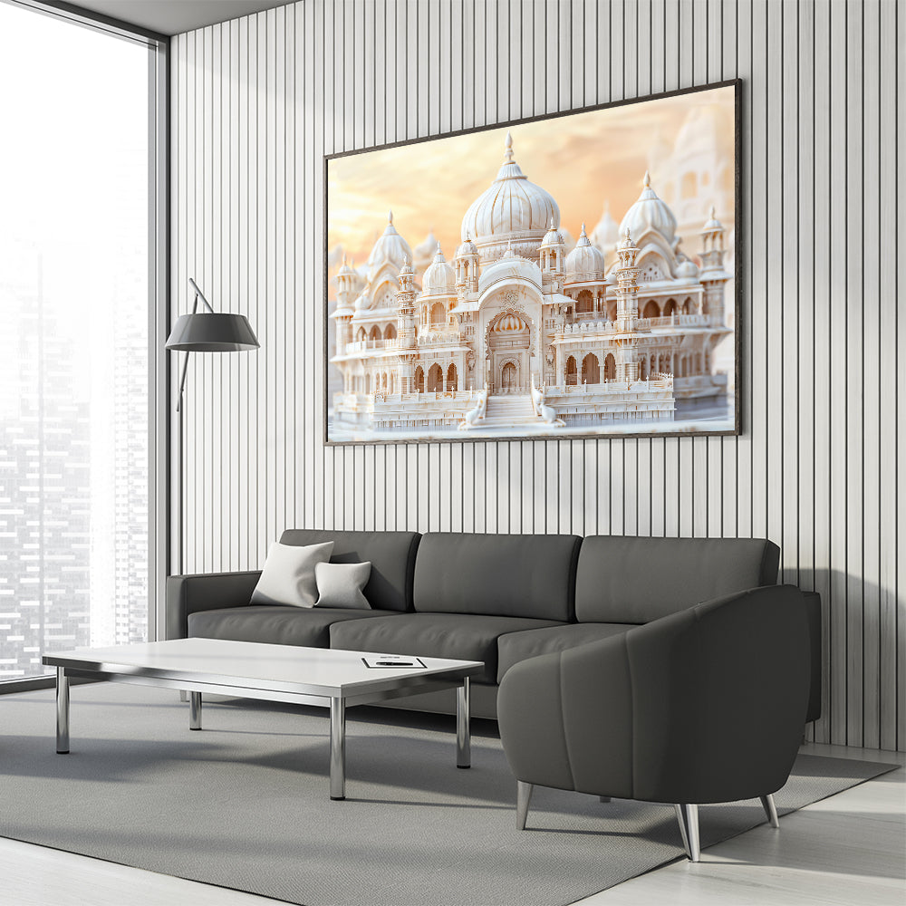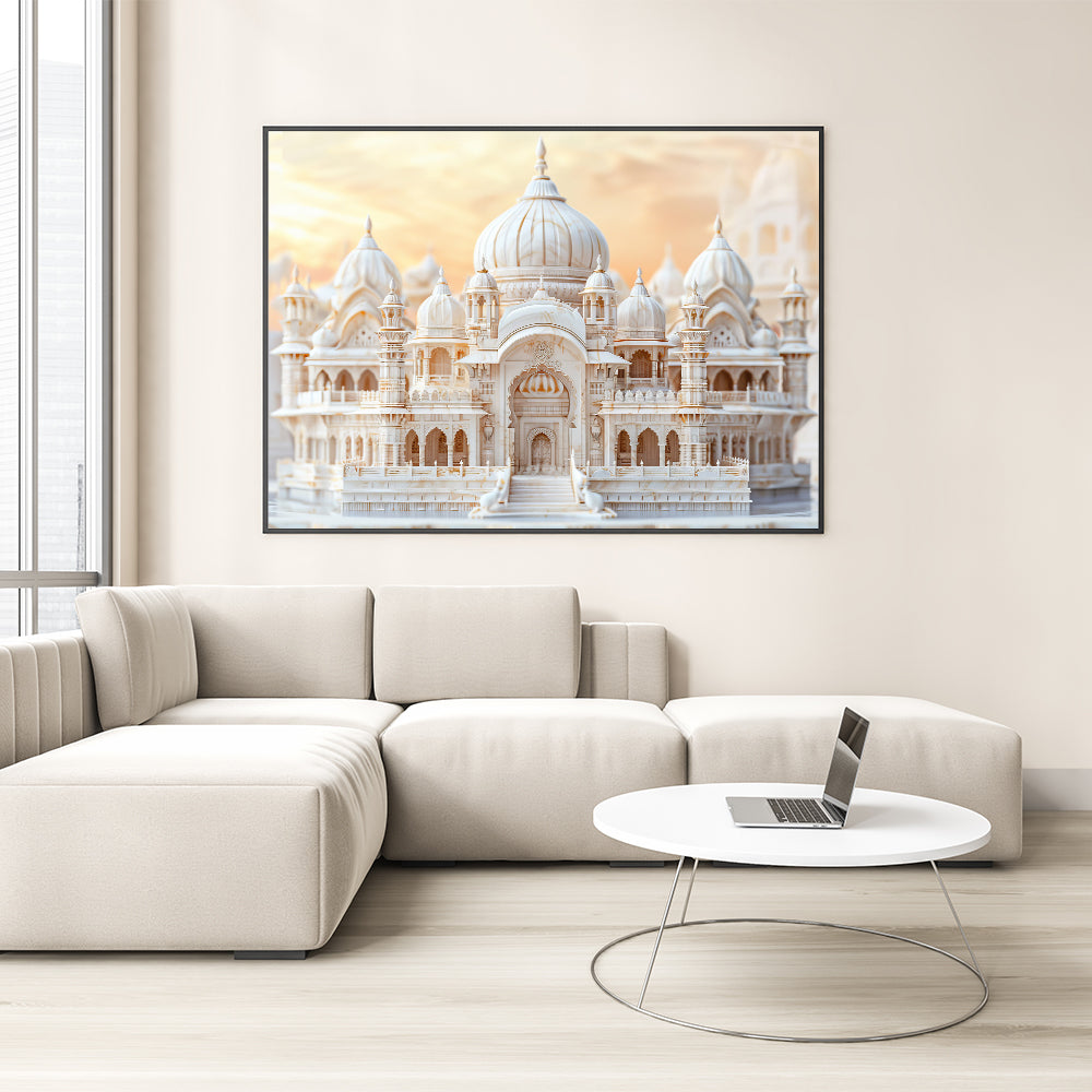 Infuse your space with the opulence of grand architecture through this elegant marble domes wall art. Featuring a stunning palace with intricate domes and detailed carvings, this artwork captures the beauty and craftsmanship of classical design. The soft hues of the marble structure are complemented by the warm glow of the sunset, creating a serene and majestic scene that adds sophistication to any room. Perfect for those who appreciate architectural artistry and luxury, this print is an exquisite addition to any decor.