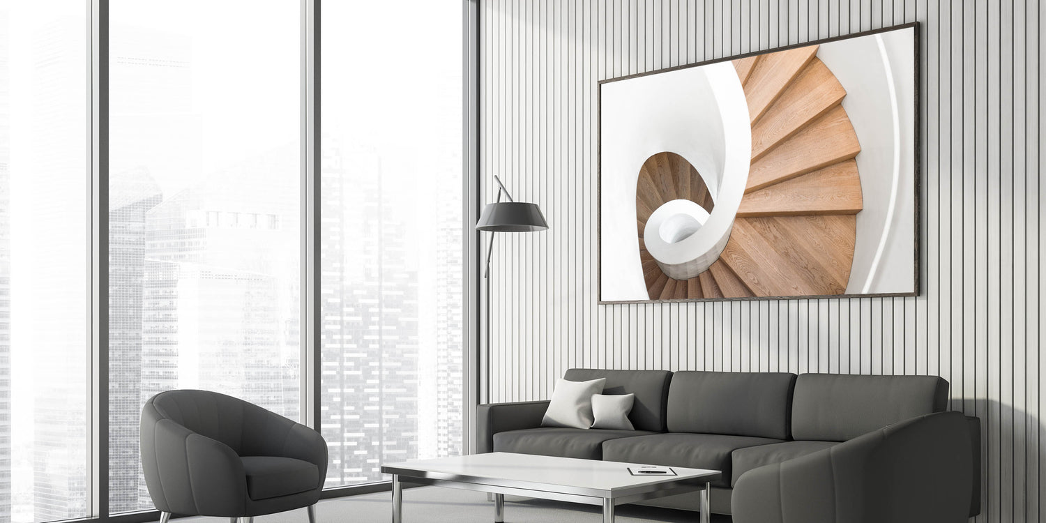 This wooden staircase artwork will make a striking addition to your art collection, offering both aesthetic appeal and timeless beauty to your interior design.