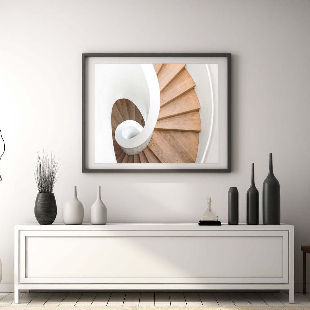 Elegant Wooden Spiral Staircase Art - Architectural Wall Decor Prints