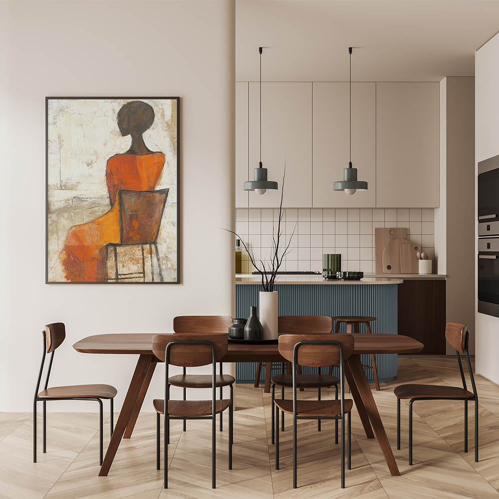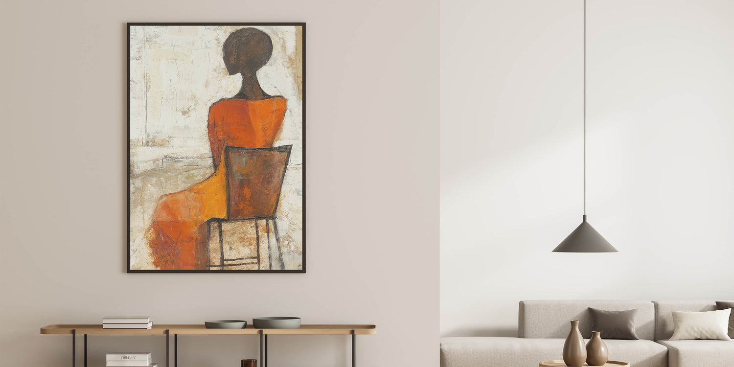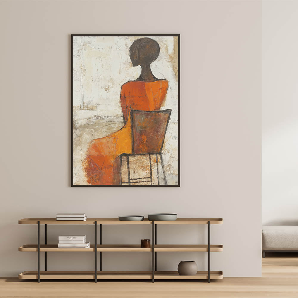 This expressive abstract figurative piece evokes emotion and depth through its simplicity, making it an ideal unique figurative canvas print for art lovers. Whether you're looking for modern abstract figure paintings or a unique seated portrait, this artwork adds warmth and sophistication to any setting.