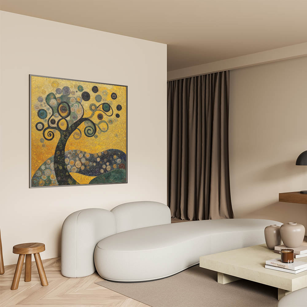 Add a bold statement to your space with this abstract floral artwork for home decor. Featuring a mesmerizing swirl of golden hues, deep greens, and black, this modern flower abstract painting brings a luxurious yet organic aesthetic to any interior. The intricate textures and circular patterns evoke a sense of movement, making this a stunning contemporary botanical canvas print for art lovers.
