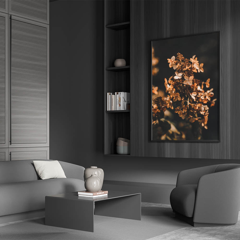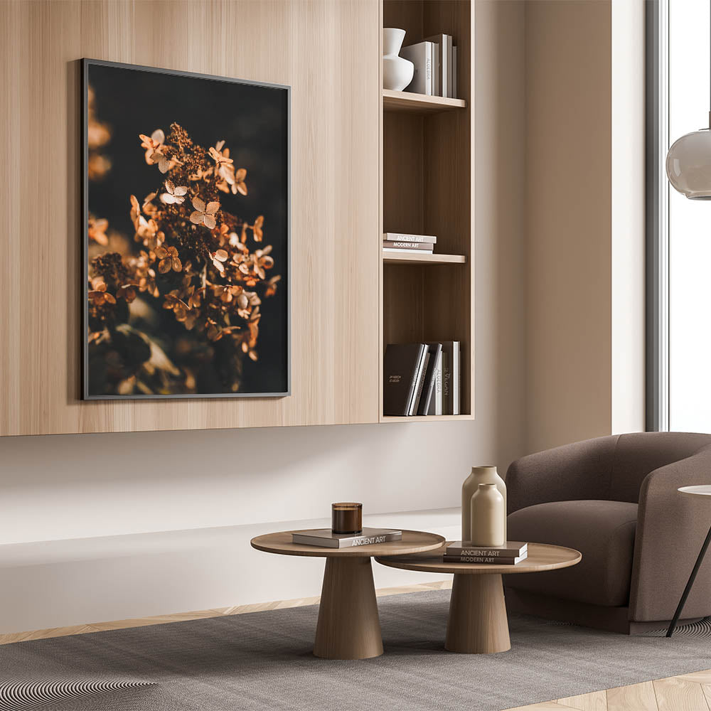 Celebrate the beauty of fall with this fall wall art featuring delicate golden-hued flowers against a soft, dark background. The rich warmth of autumn colors and the intricate floral details create an elegant yet rustic look, making this piece perfect for cozy seasonal decor. This autumn wall art blends beautifully with modern, farmhouse, and nature-inspired interiors.