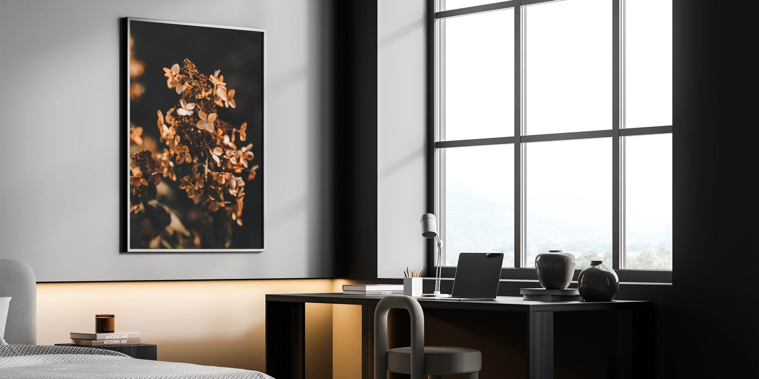 • Premium materials: Available in stretched canvas, framed canvas, acrylic glass, framed acrylic glass, framed print, rolled canvas, and rolled print.