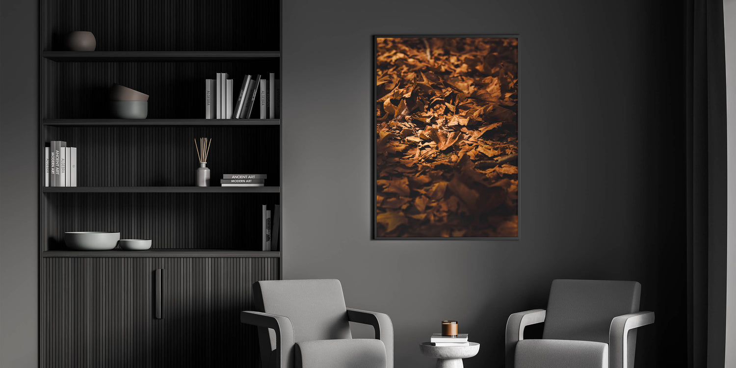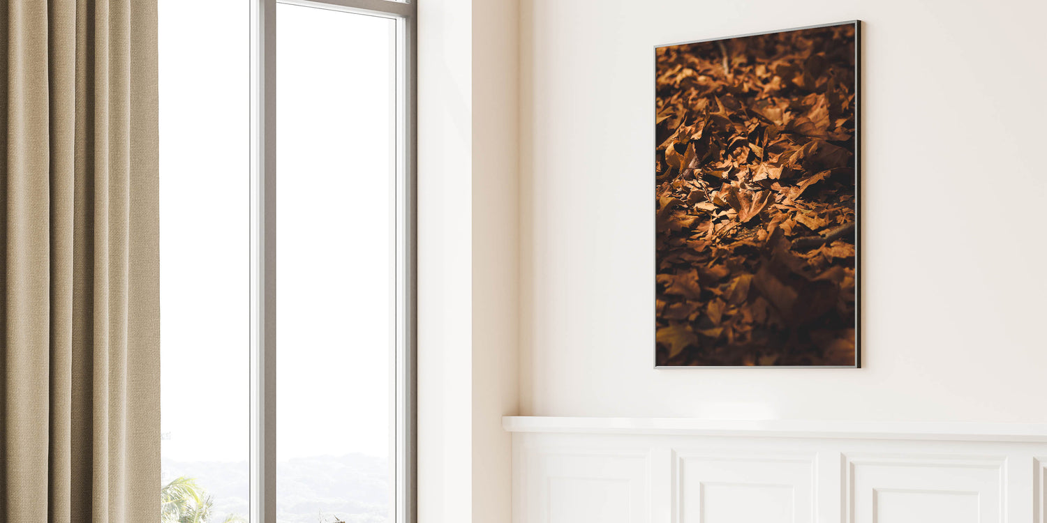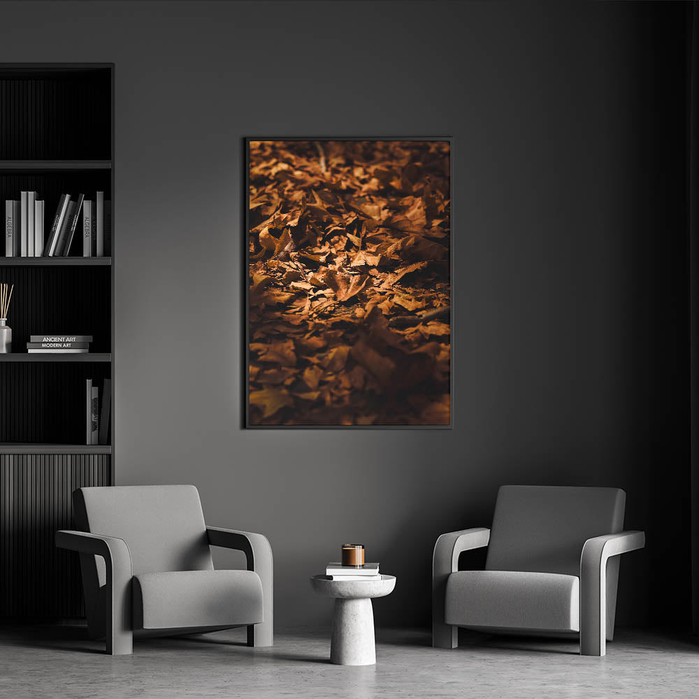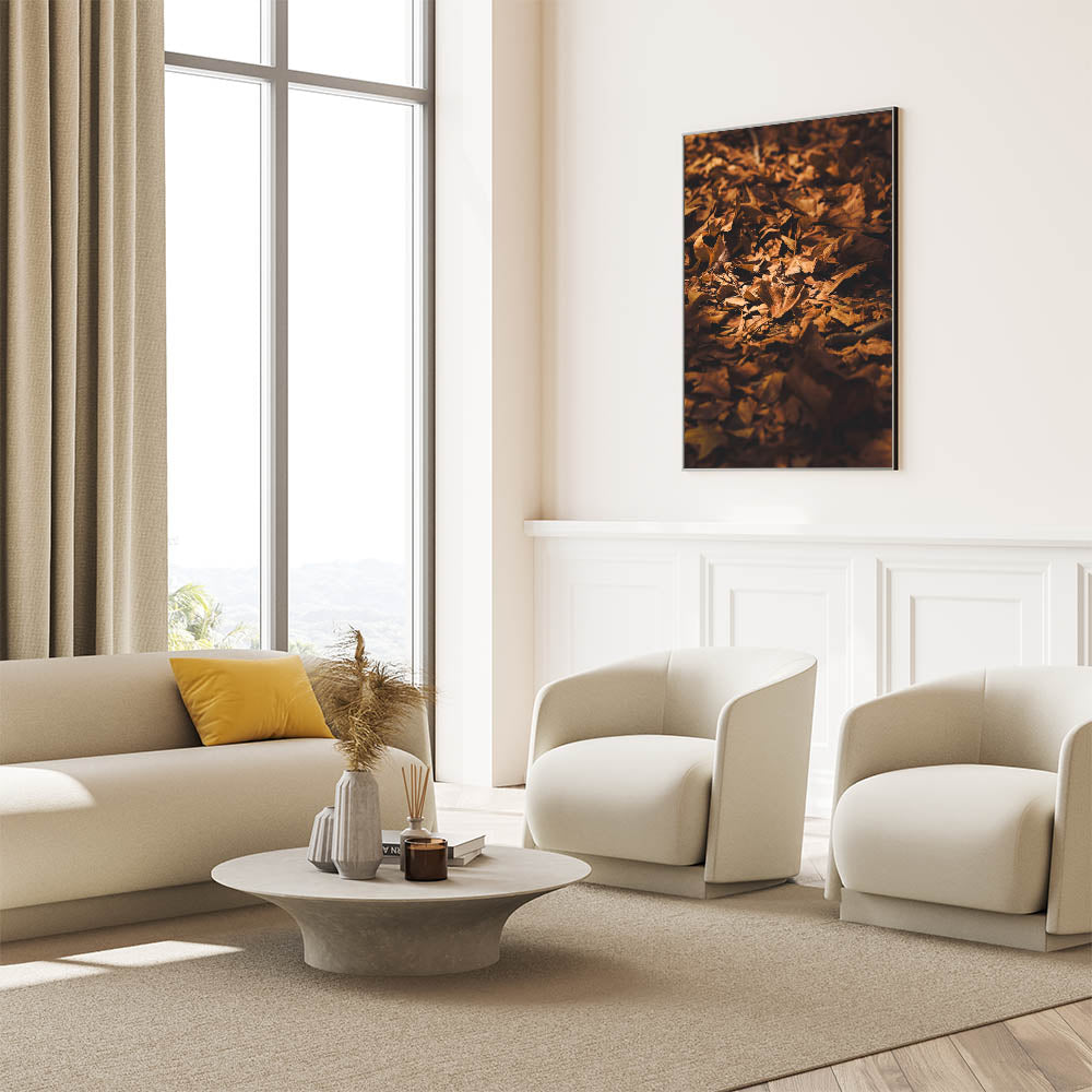 Bring the warmth of autumn into your space with this Fall Wall Art, featuring a close-up of golden-brown leaves scattered across the forest floor. The rich textures and natural lighting of this Autumn Wall Art create an inviting, seasonal ambiance, perfect for rustic and nature-inspired interiors.