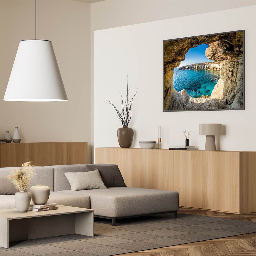 This beautiful piece of cave photography is perfect for nature lovers and those who appreciate the serene beauty of natural landscapes. Add this artwork to your decor to bring a sense of adventure and warmth to any room in your home.
