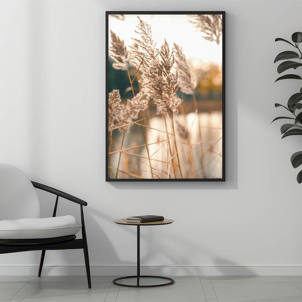Celebrate the beauty of nature with this elegant summer wall art, featuring delicate pampas grass illuminated by the golden light of the setting sun. The soft beige and warm brown tones create a calming and organic atmosphere, making this artwork ideal for modern, boho, or minimalist interiors. Whether displayed in a living room, bedroom, or office, this nature-inspired wall decor brings a sense of tranquility and rustic charm to any space.