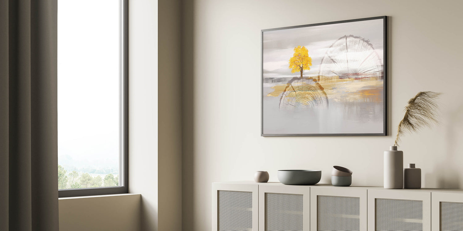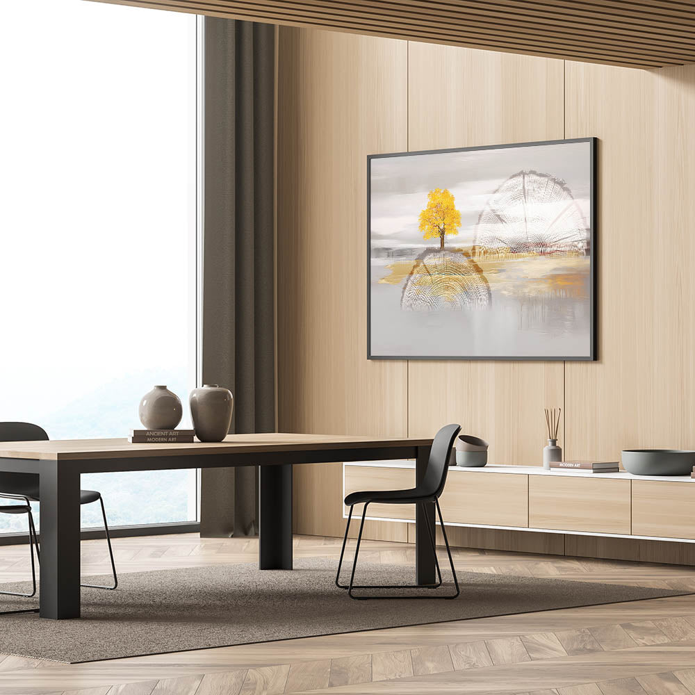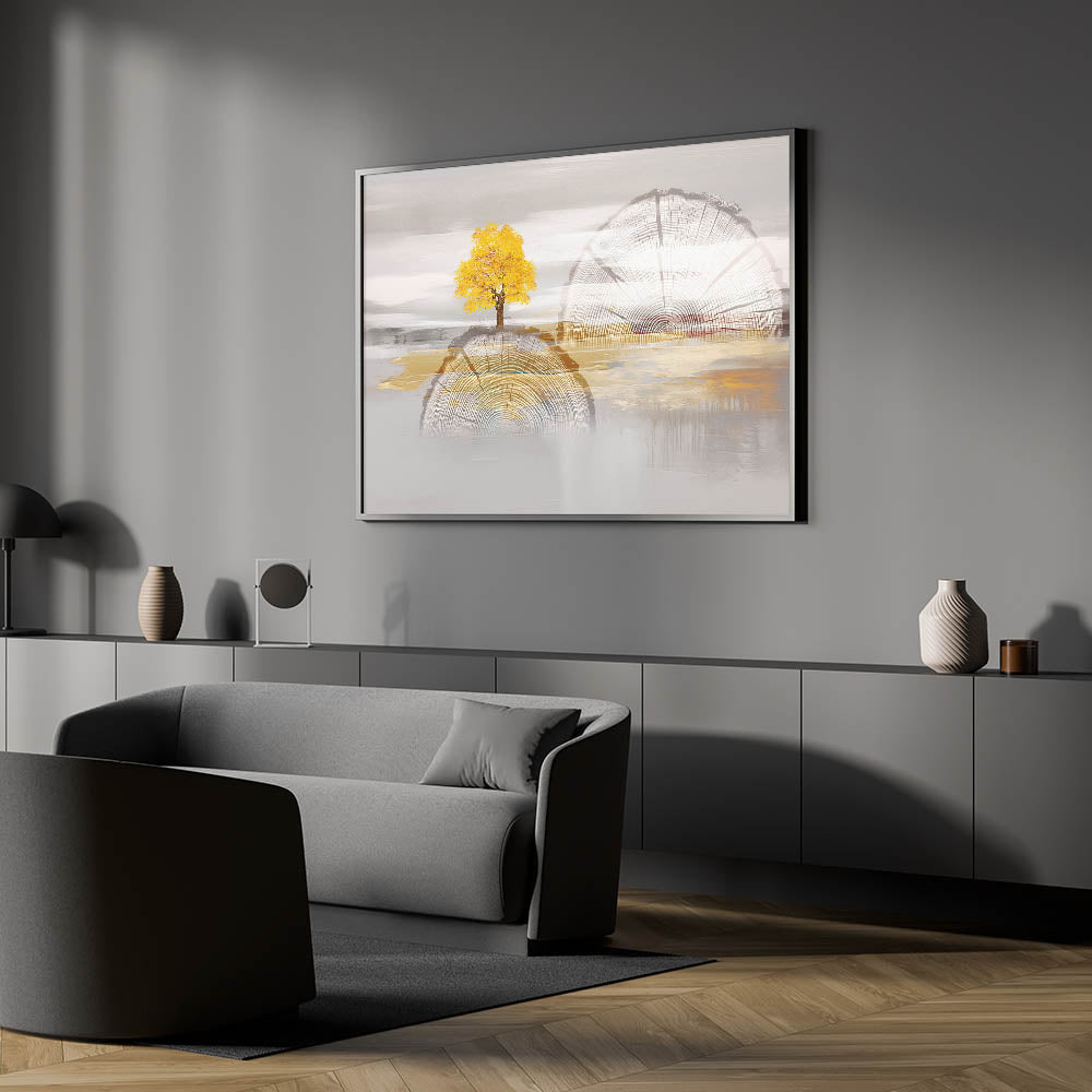 Transform your space with this dynamic strokes and lines art, which seamlessly blends modern abstract line designs with natural beauty. The bold golden hues of the tree add a touch of warmth and elegance, making it a focal point in any room. Whether you prefer a minimalist aesthetic or a more eclectic decor, this piece is sure to enhance your environment.