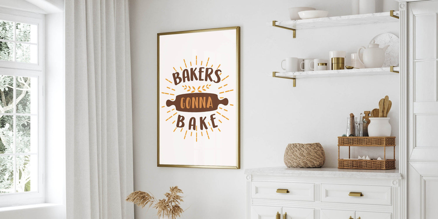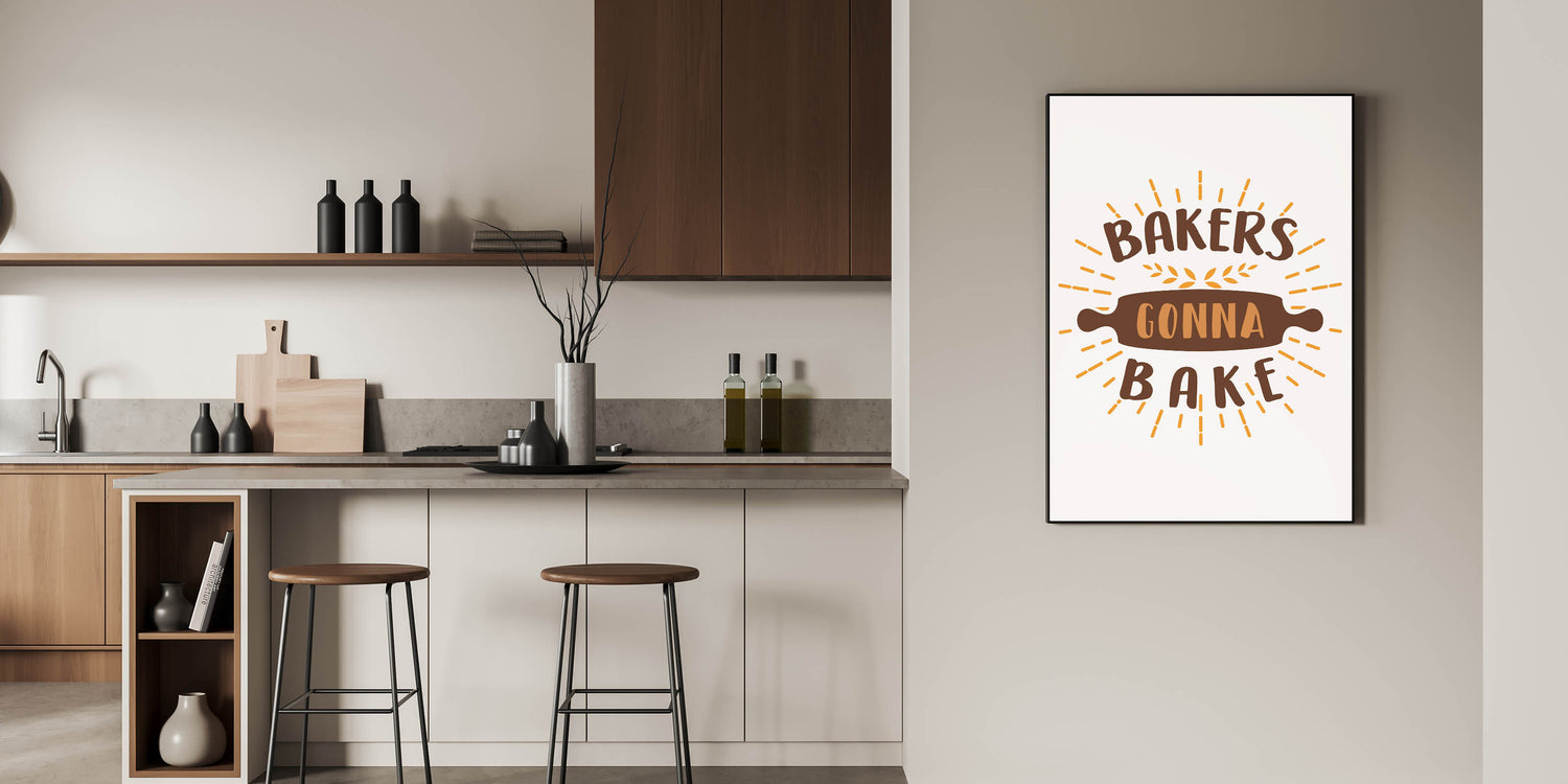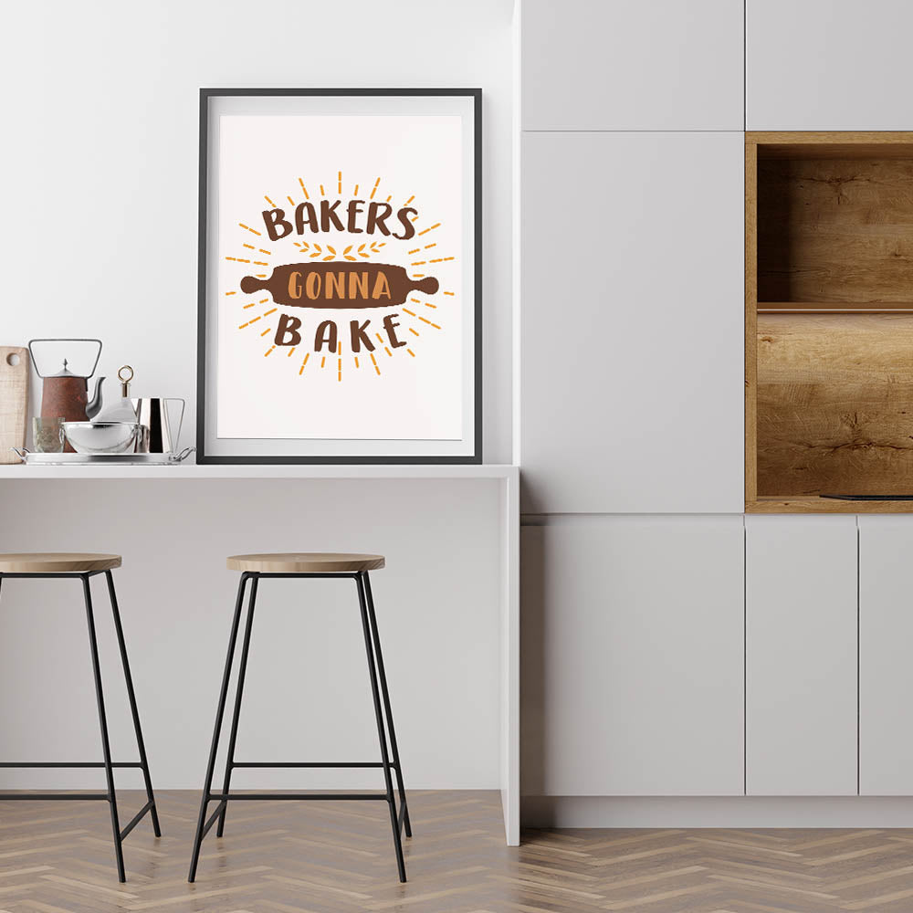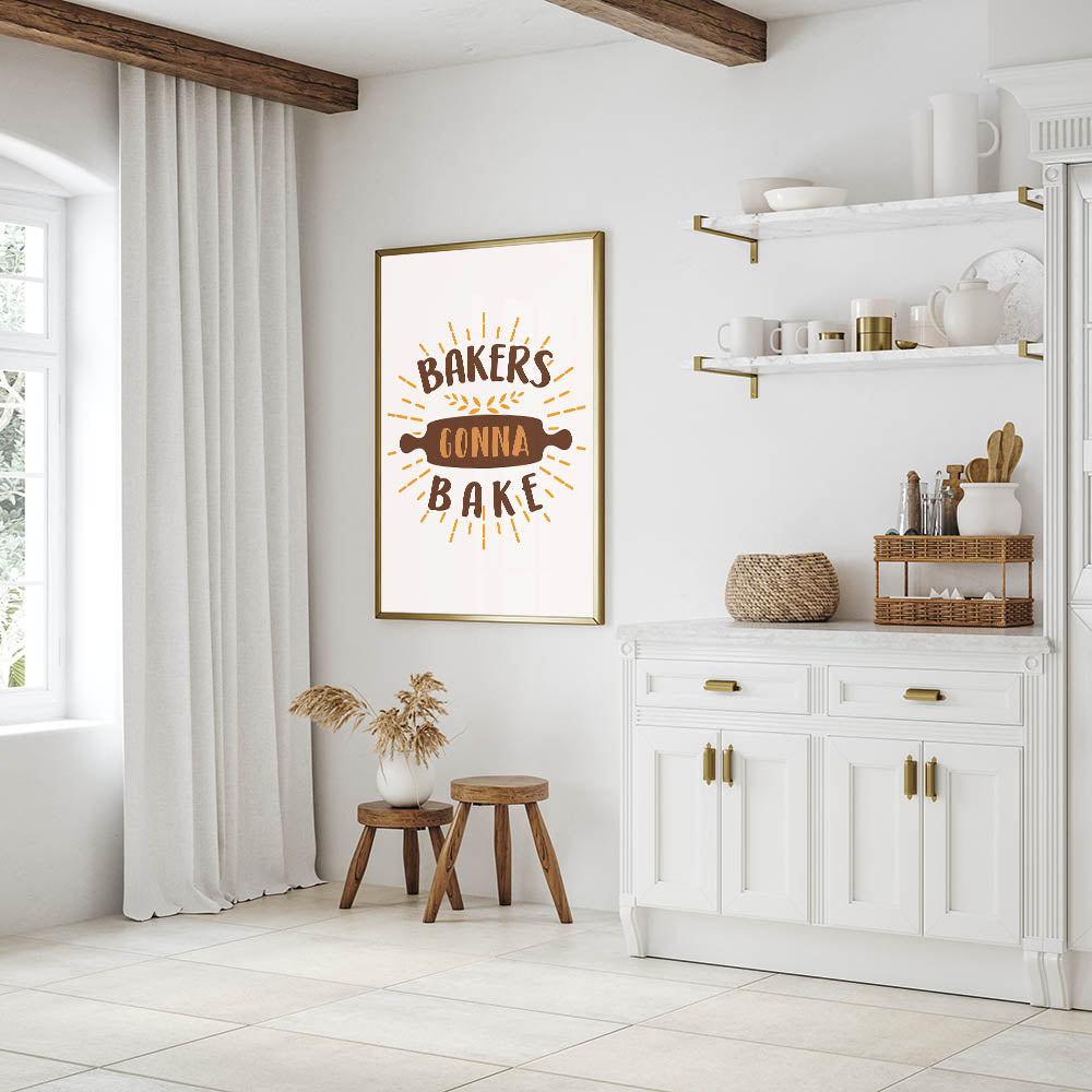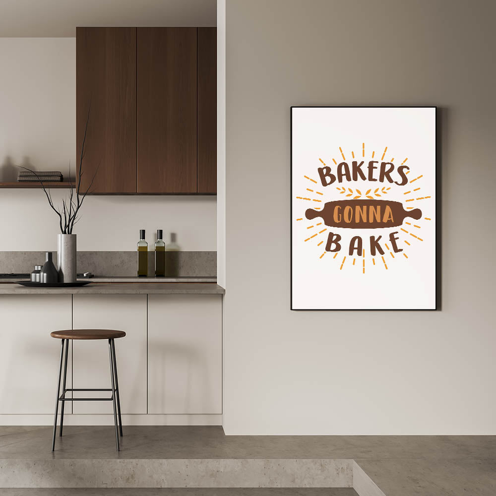 Celebrate your love for baking with this Inspirational Kitchen Prints featuring the fun phrase "Bakers Gonna Bake." Designed for home bakers and professionals alike, this Motivational Kitchen Wall Decor adds warmth and personality to any baking space. The bold typography and rolling pin illustration create a charming and energetic look, making this Kitchen Quote Wall Art a delightful addition to kitchens, cafés, and bakeries.