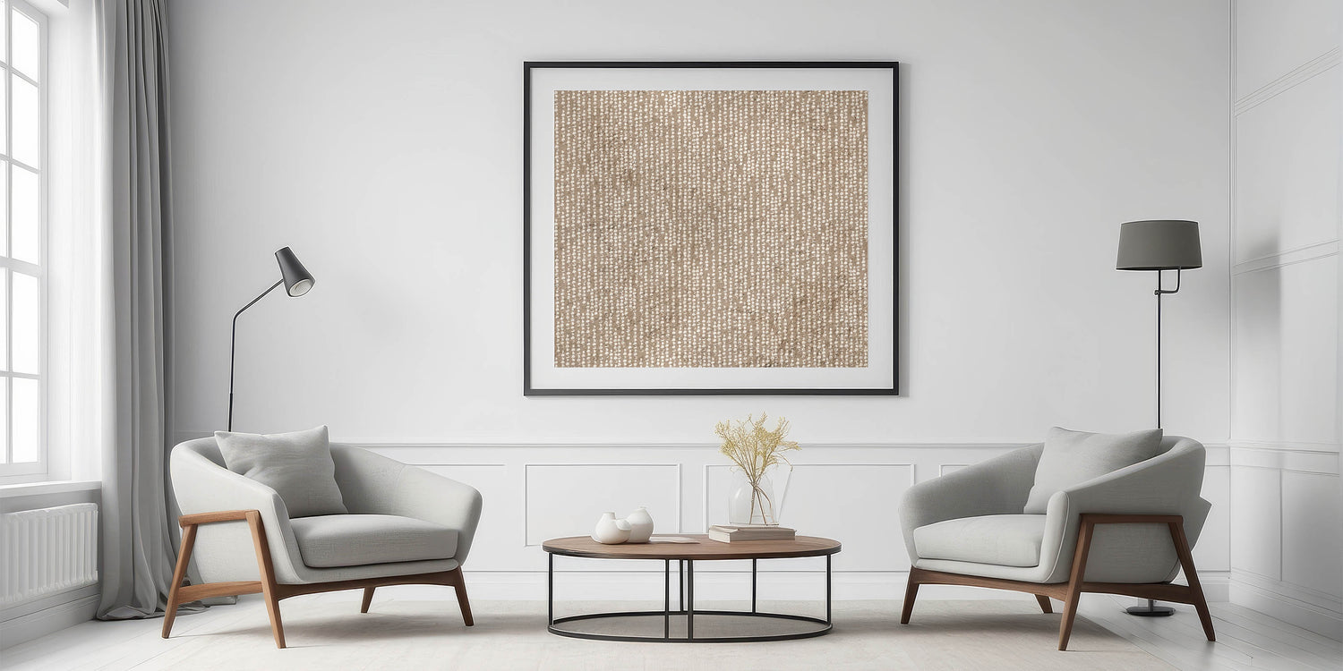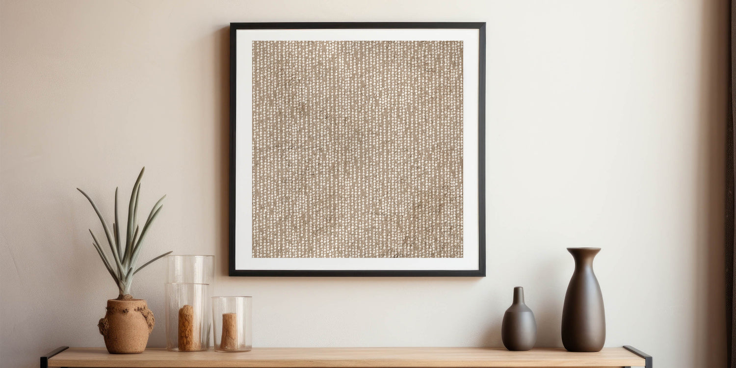 Whether placed as a feature above furniture or styled in a gallery wall, this piece offers soft structure with an artisanal touch. Choose your ideal format—from rolled canvas to framed acrylic—to personalize your space with layered texture and earthy harmony.
