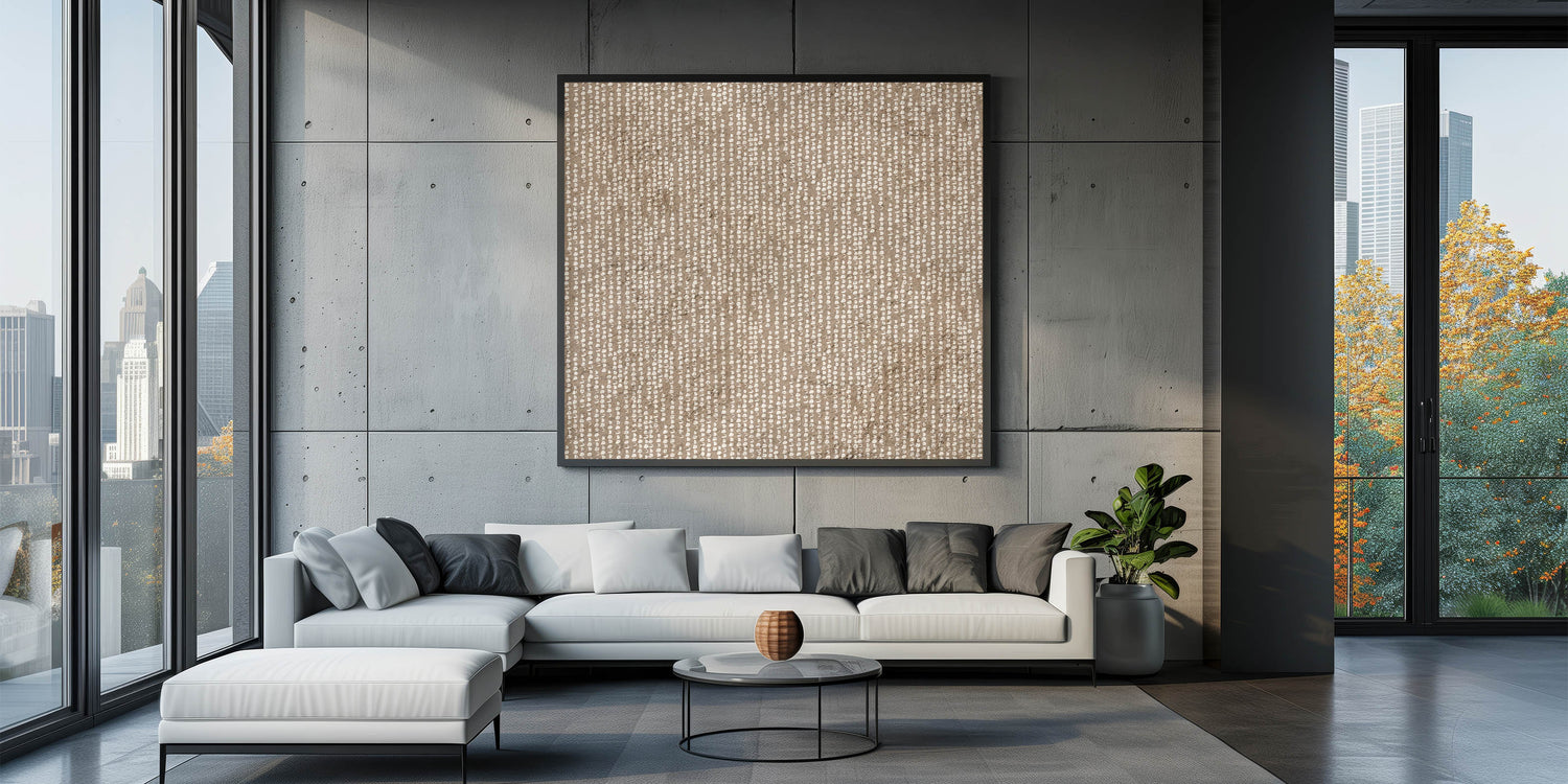 Large Abstract Wall Decor – Neutral Dot Texture on Earthy Brown Base