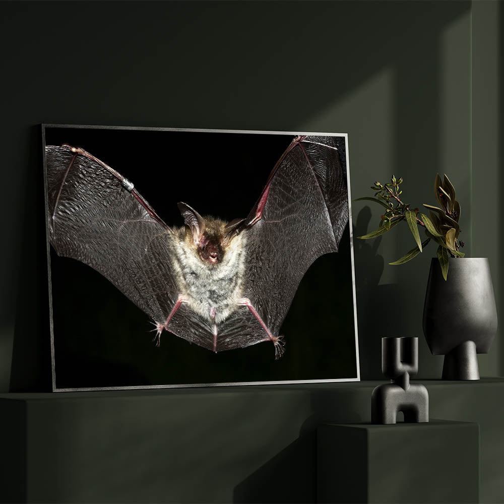Transform your space with this captivating bat photography wall art. Its dramatic close-up and detailed imagery make it a must-have for anyone looking to add a unique and powerful piece of wildlife art to their collection.