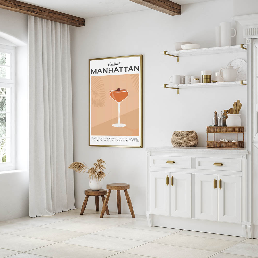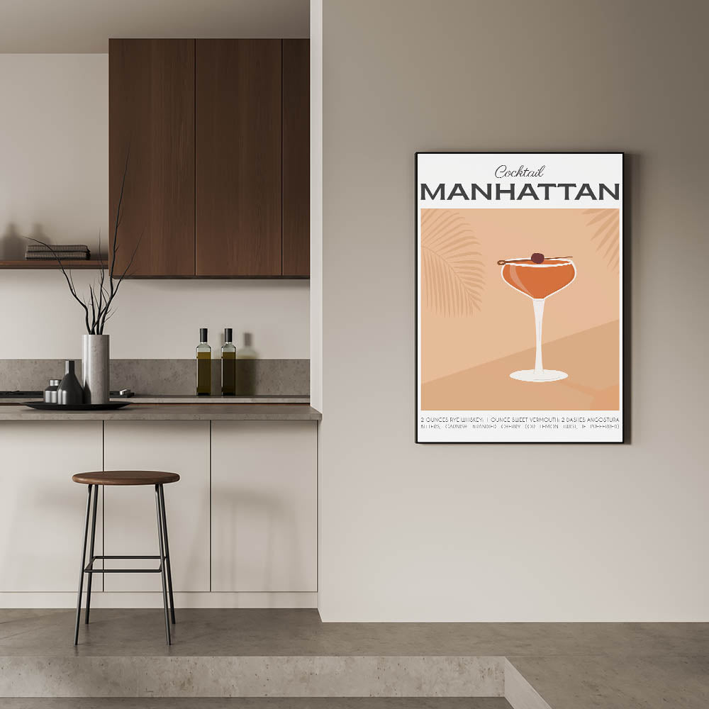 Add a touch of elegance to your space with this Manhattan cocktail recipe wall art. Featuring a minimalist yet stylish design, this drink-themed art print showcases the timeless Manhattan cocktail with its classic ingredients and sophisticated presentation. Ideal for home bars, kitchens, restaurants, or lounges, this beverage art decor blends functionality with aesthetic charm.