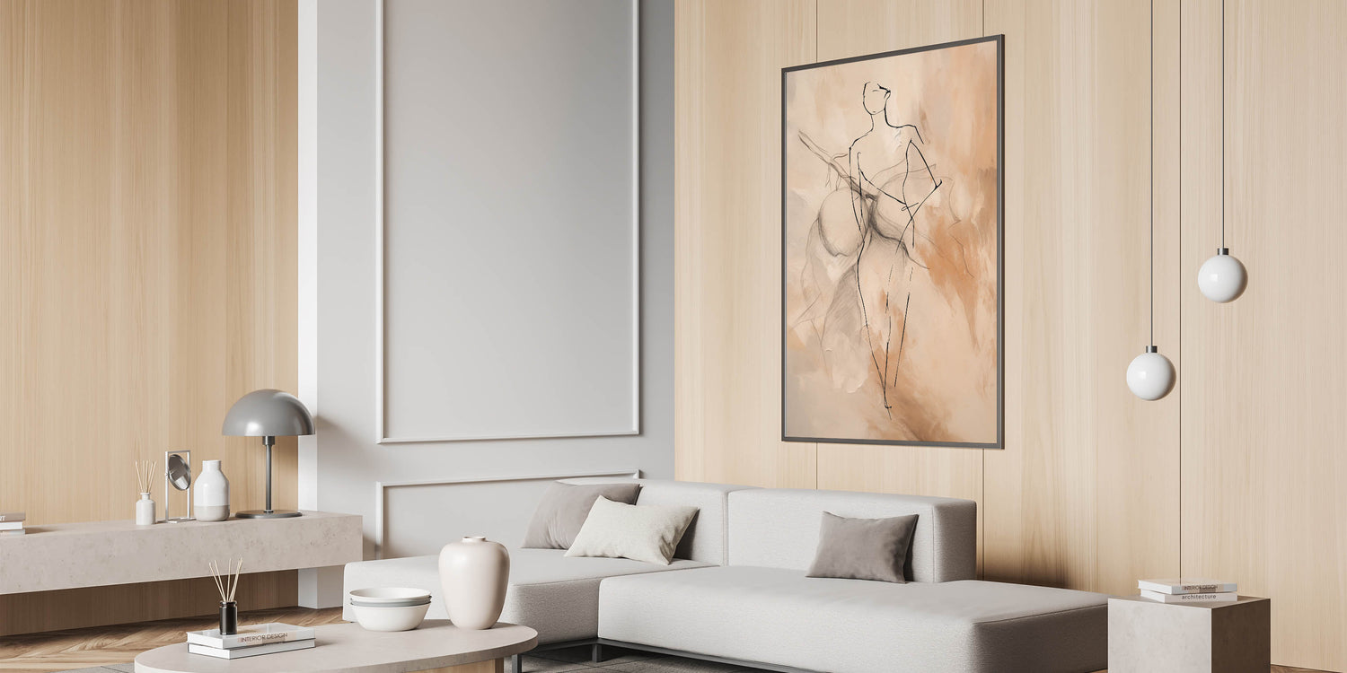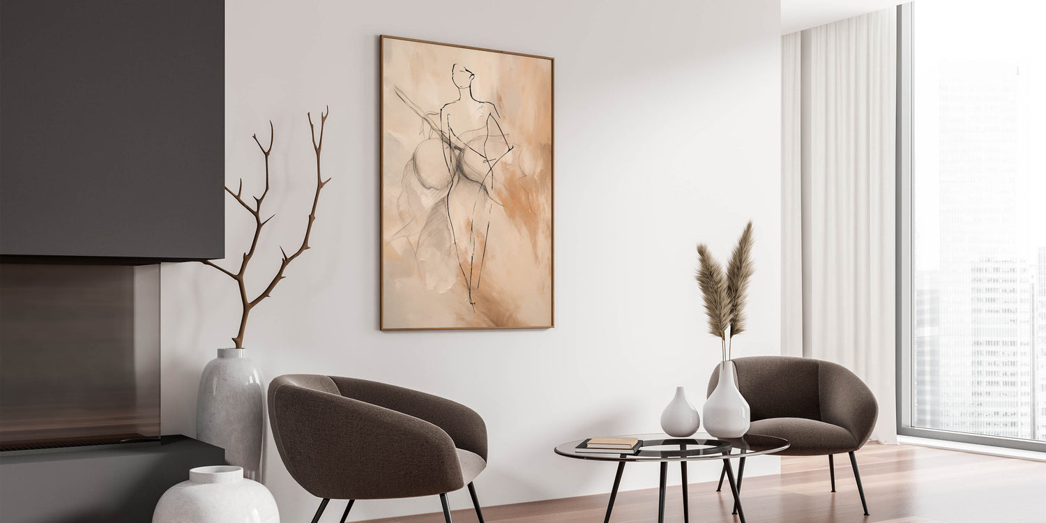 - Elegant Design: Showcases a minimalist line drawing of a figure with botanical elements, perfect for modern interiors.