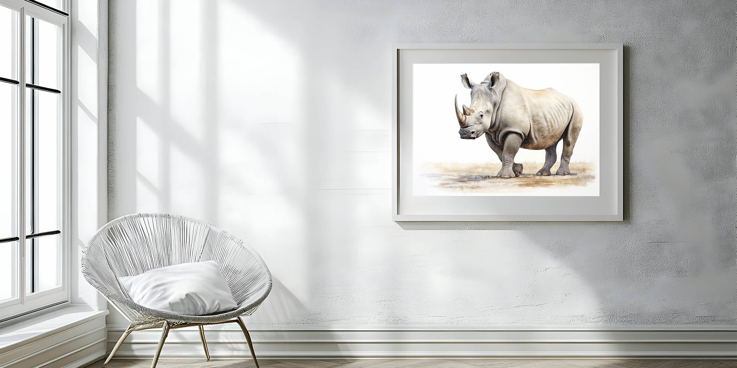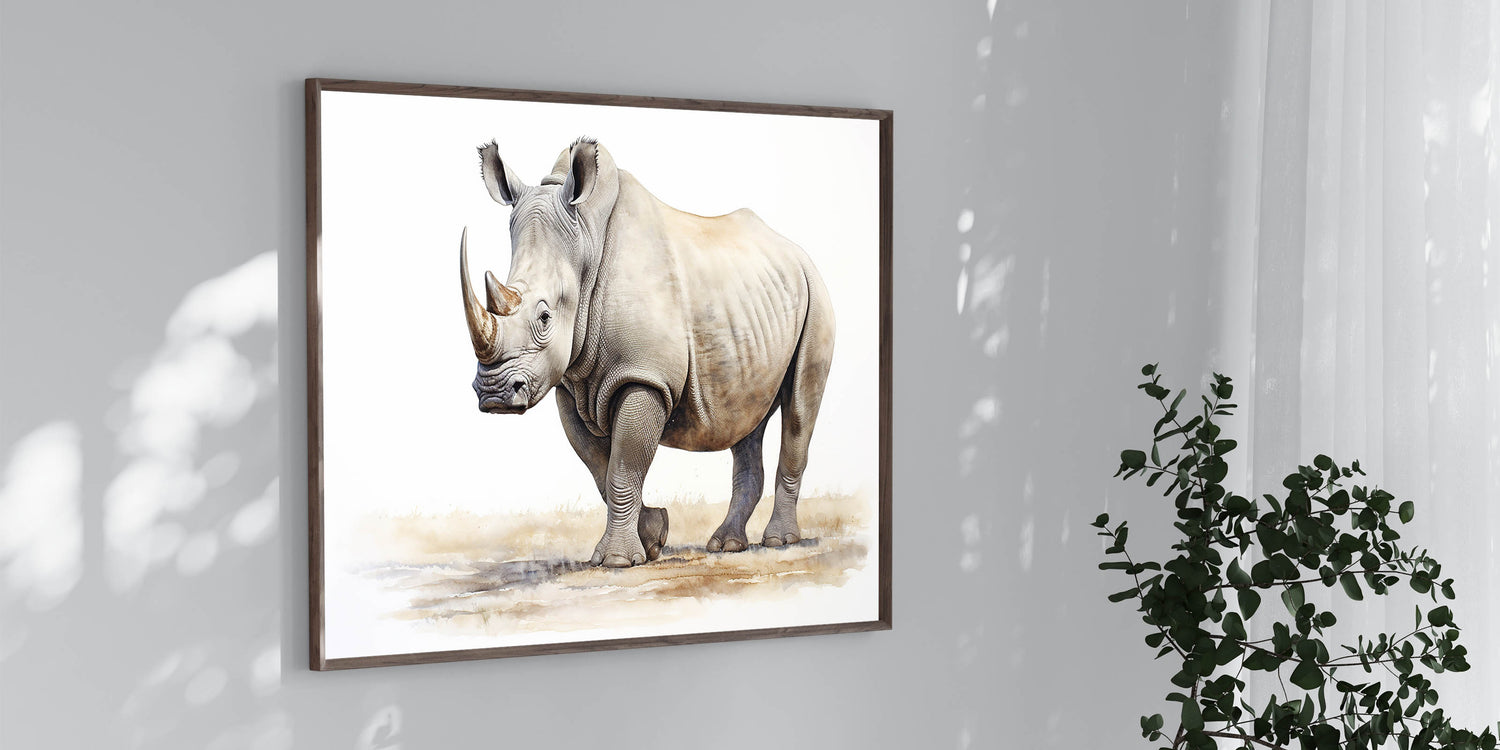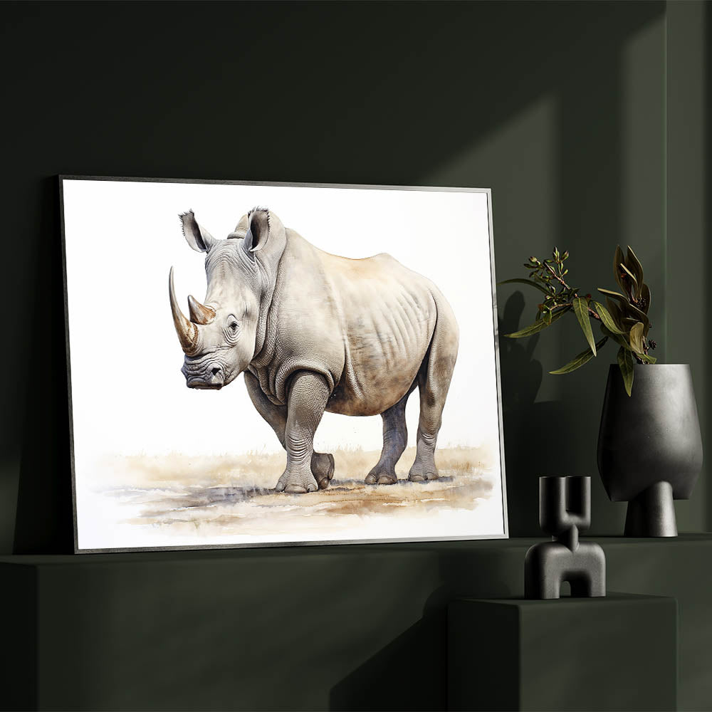 Introduce a touch of elegance and simplicity to your space with this minimalist rhinoceros wall art. The subtle hues and refined details of the rhinoceros, set against a clean white background, create a peaceful and sophisticated piece of art. Perfect for those who appreciate minimalist design and nature-inspired decor, this artwork adds a serene presence to any room.