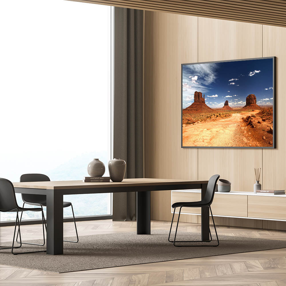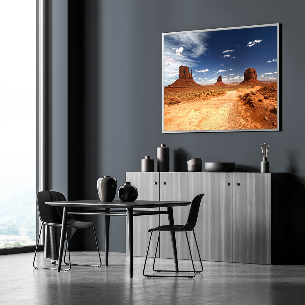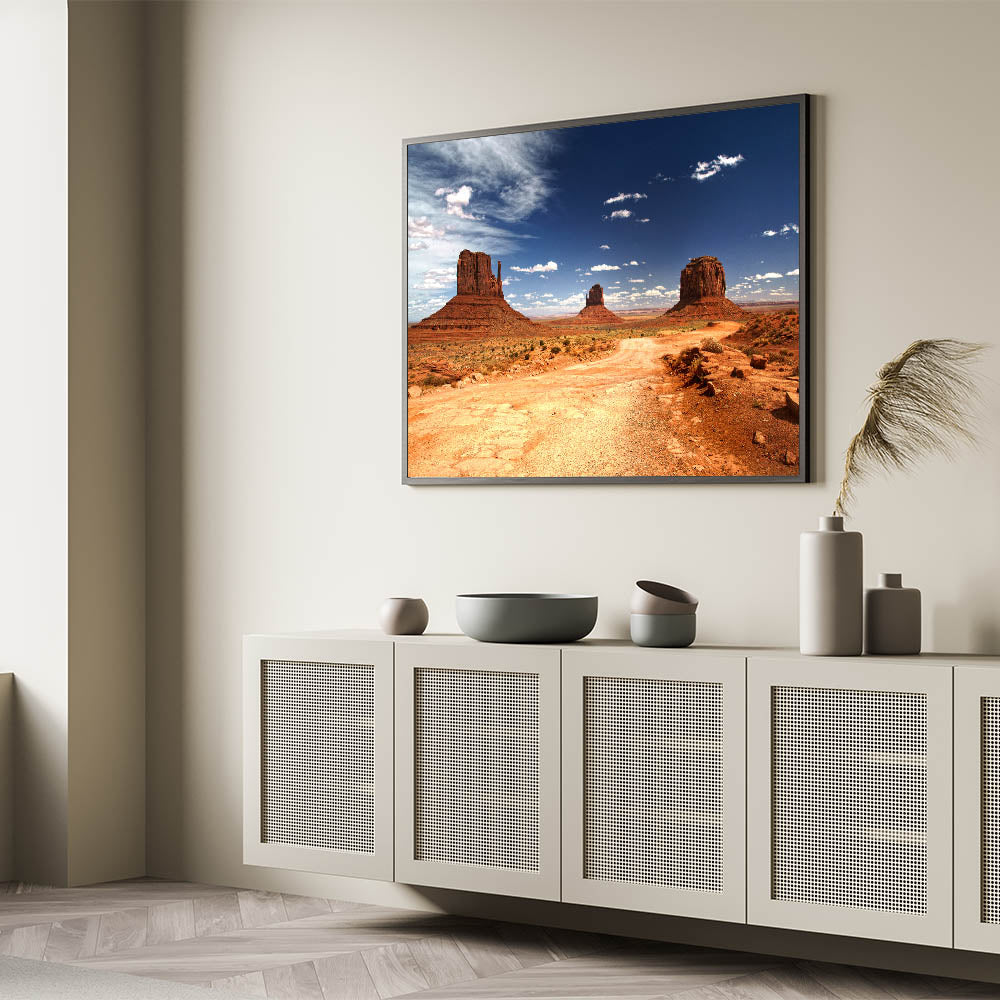 Transform your space with this stunning representation of Arizona’s iconic Monument Valley. Whether it’s for your living room, office, or hallway, this scenic southwest decor brings a piece of desert tranquility and rugged beauty into your home.