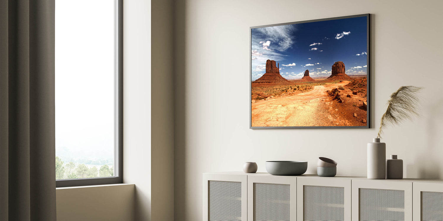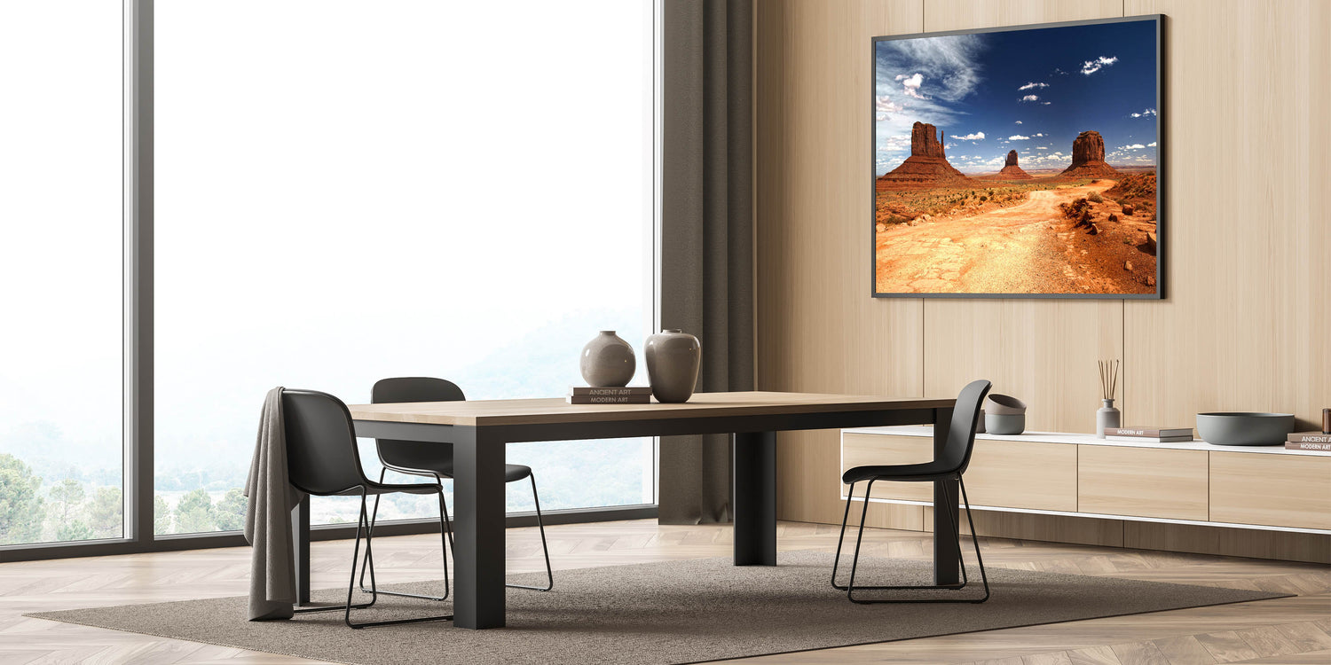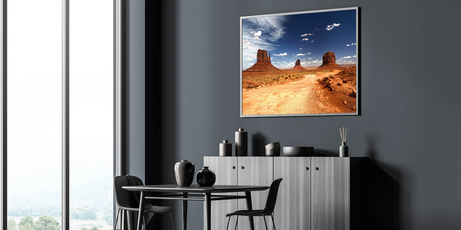 Transform your space with this stunning representation of Arizona’s iconic Monument Valley. Whether it’s for your living room, office, or hallway, this scenic southwest decor brings a piece of desert tranquility and rugged beauty into your home.