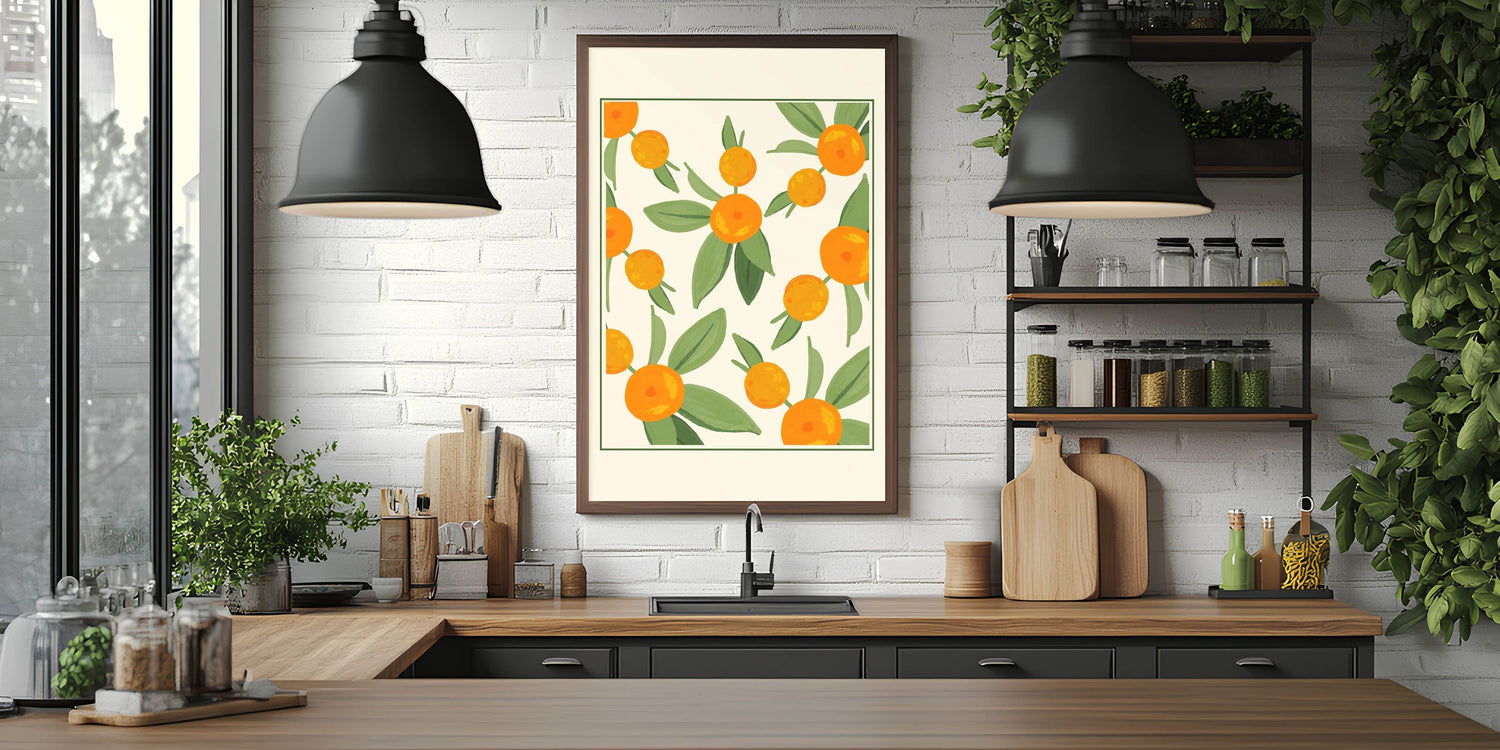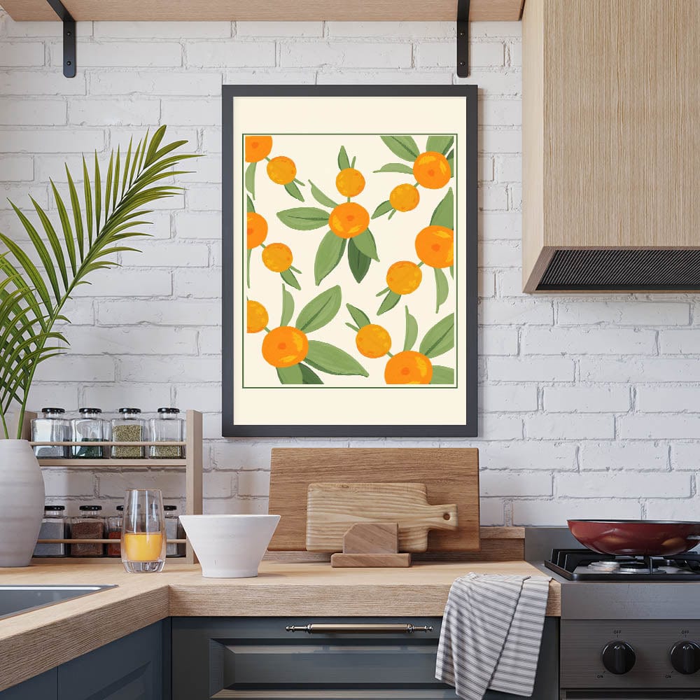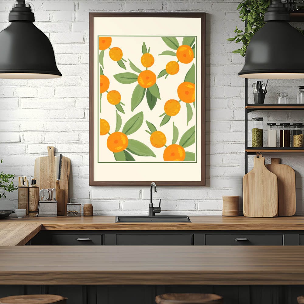 Add a refreshing citrus touch to your home with this orange fruit botanical print. Featuring a charming minimalist illustration of ripe oranges with lush green leaves, this fruit wall decor brings a sense of natural beauty and warmth to any space. The clean lines, soft textures, and earthy tones make it a perfect addition to kitchen fruit decor, modern interiors, and botanical-themed settings.