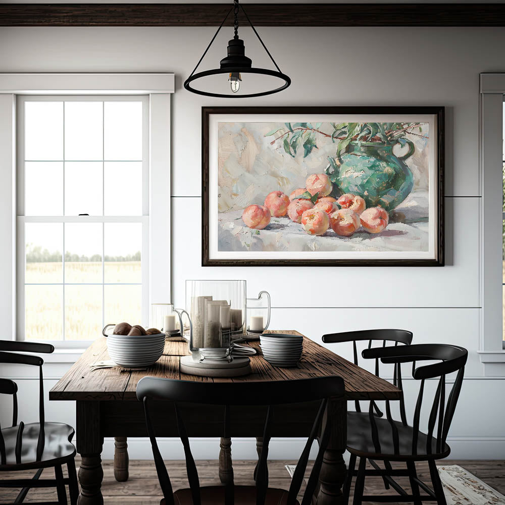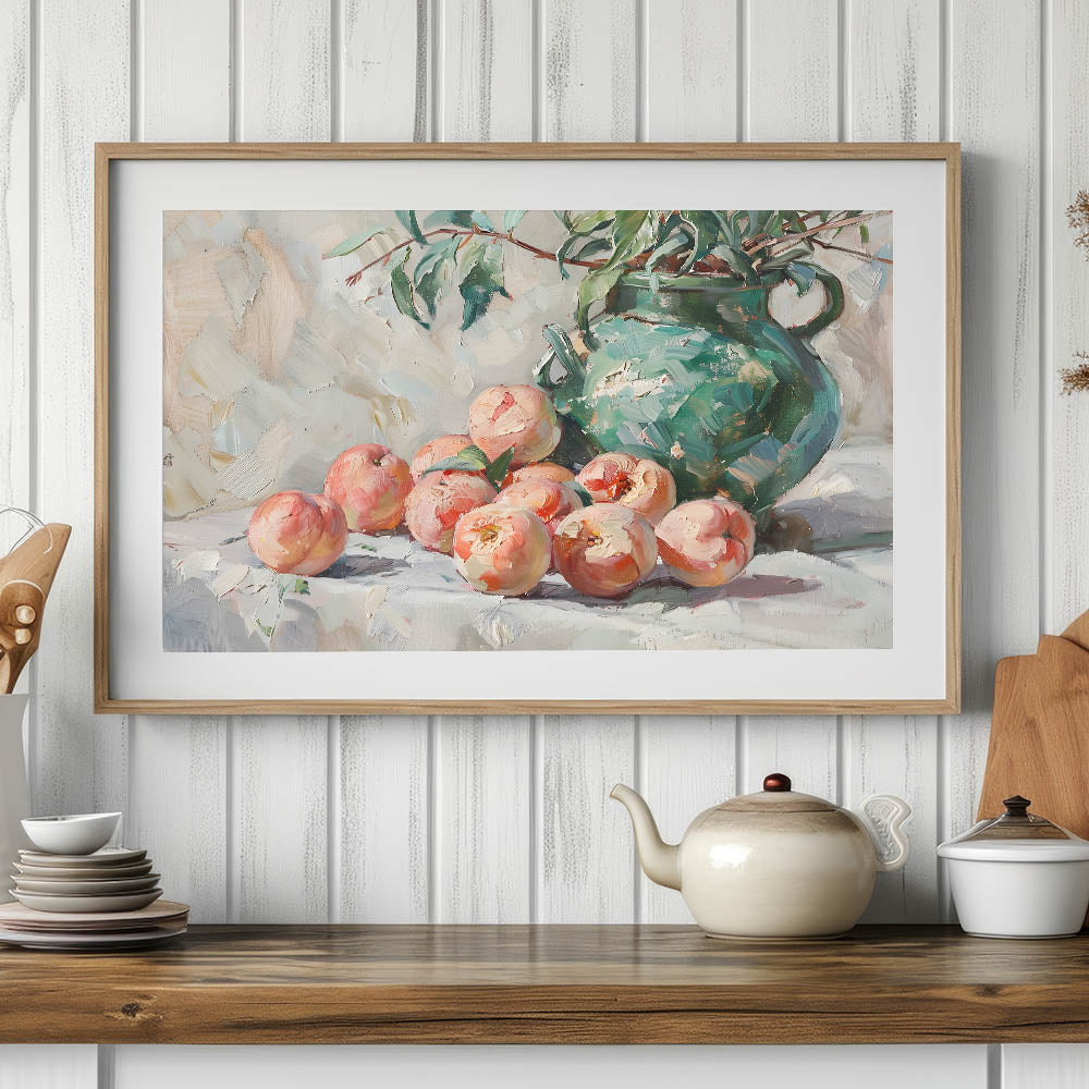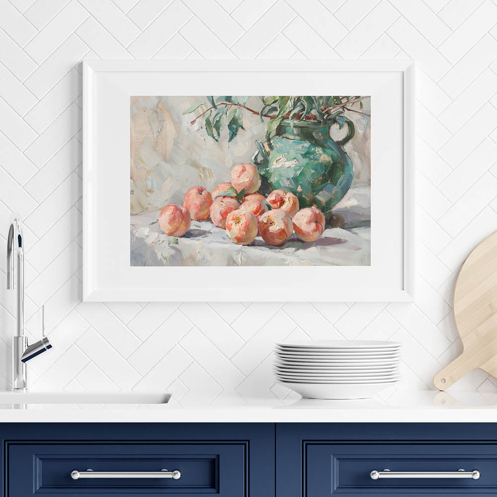 Peach Still Life Canvas Art – Elegant Kitchen Wall Decor