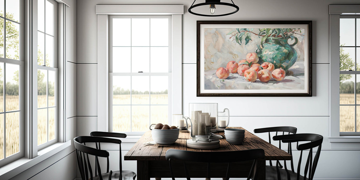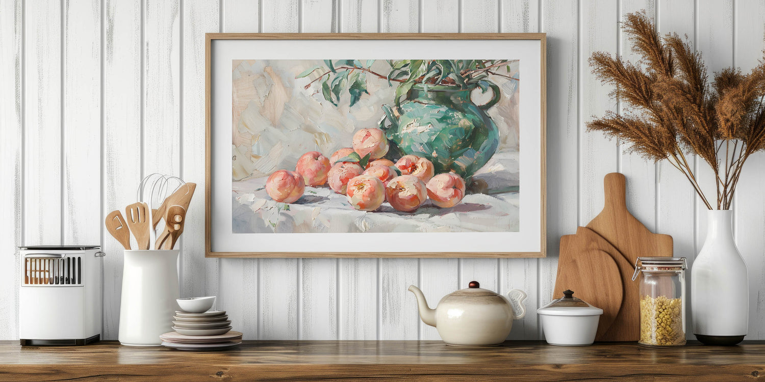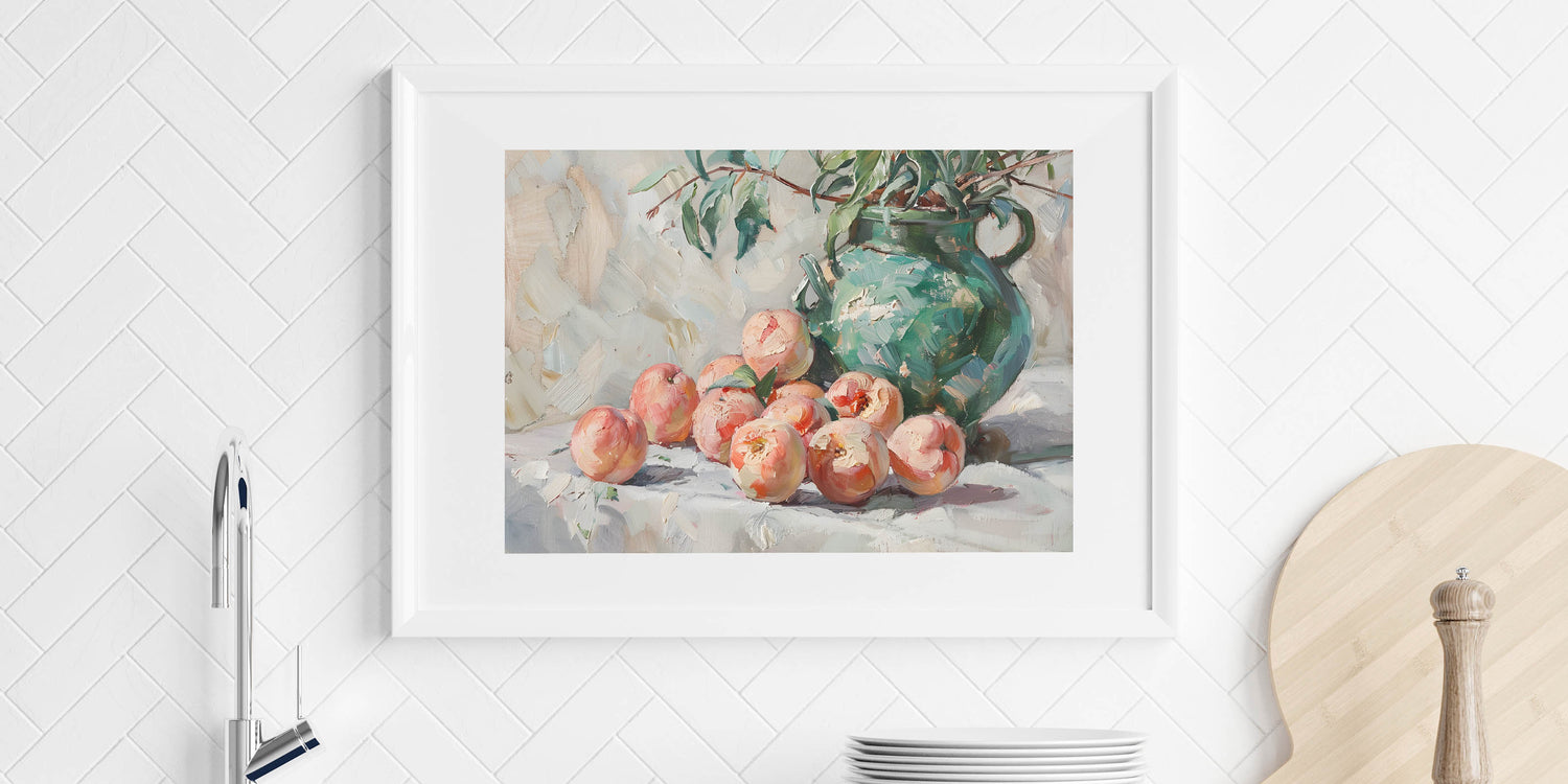 Peach Still Life Canvas Art – Elegant Kitchen Wall Decor