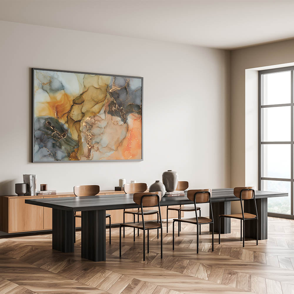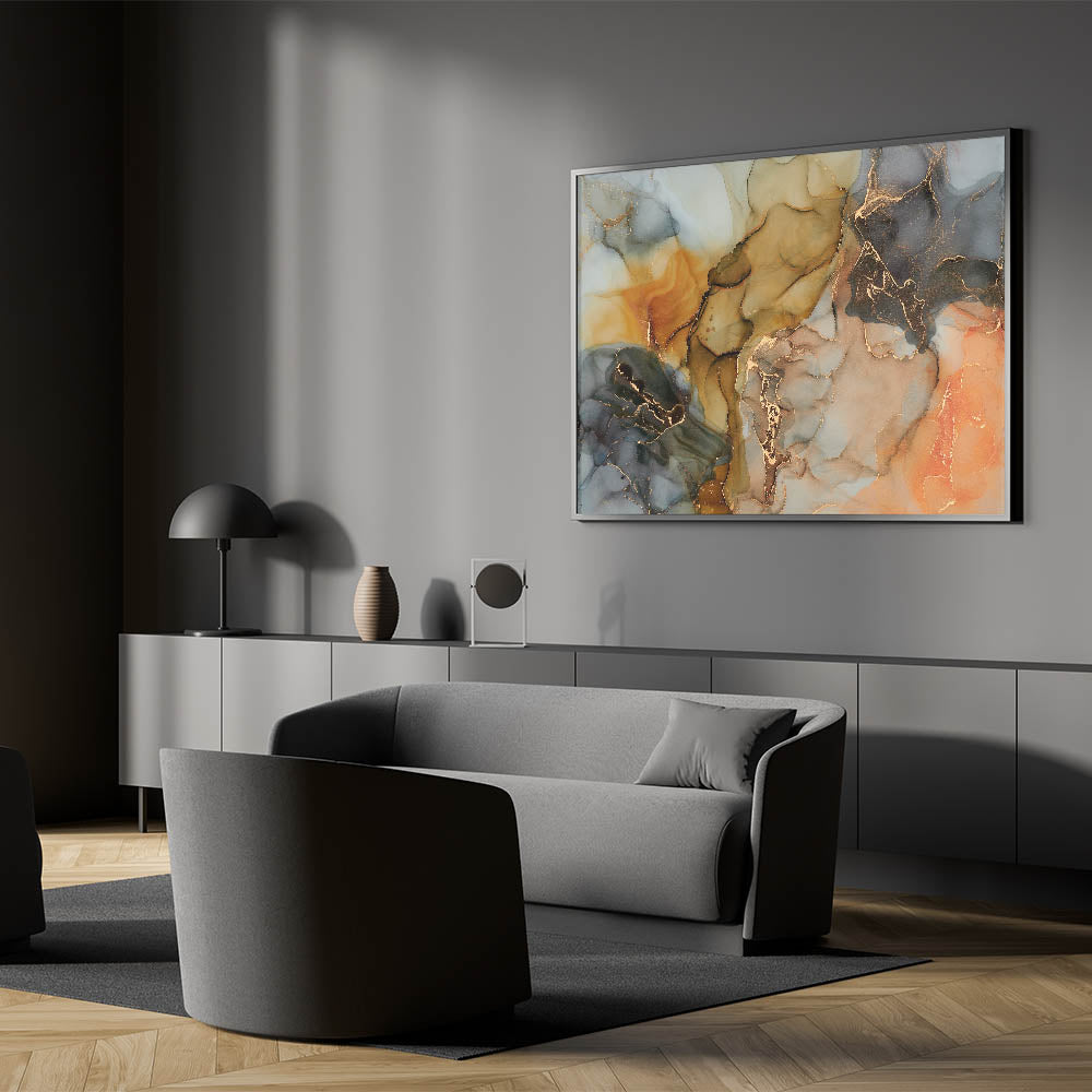 This contemporary luxury abstract artwork embodies warmth and richness, making it an ideal centerpiece for elegant decor. Whether displayed as a framed acrylic glass print or rolled canvas, this masterpiece transforms your space with a sophisticated touch.