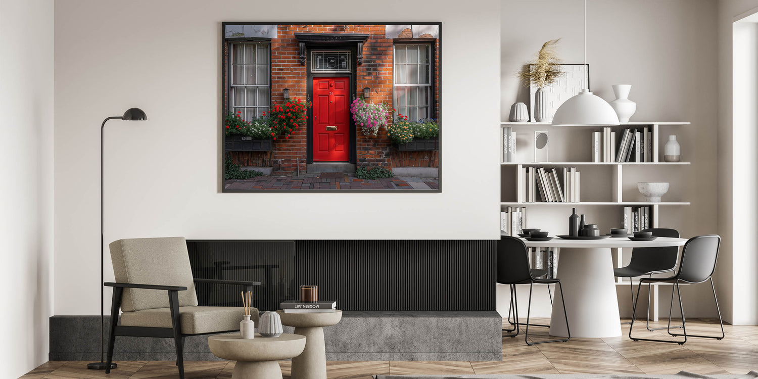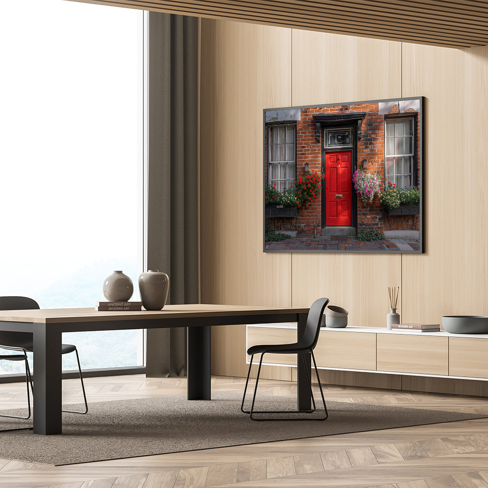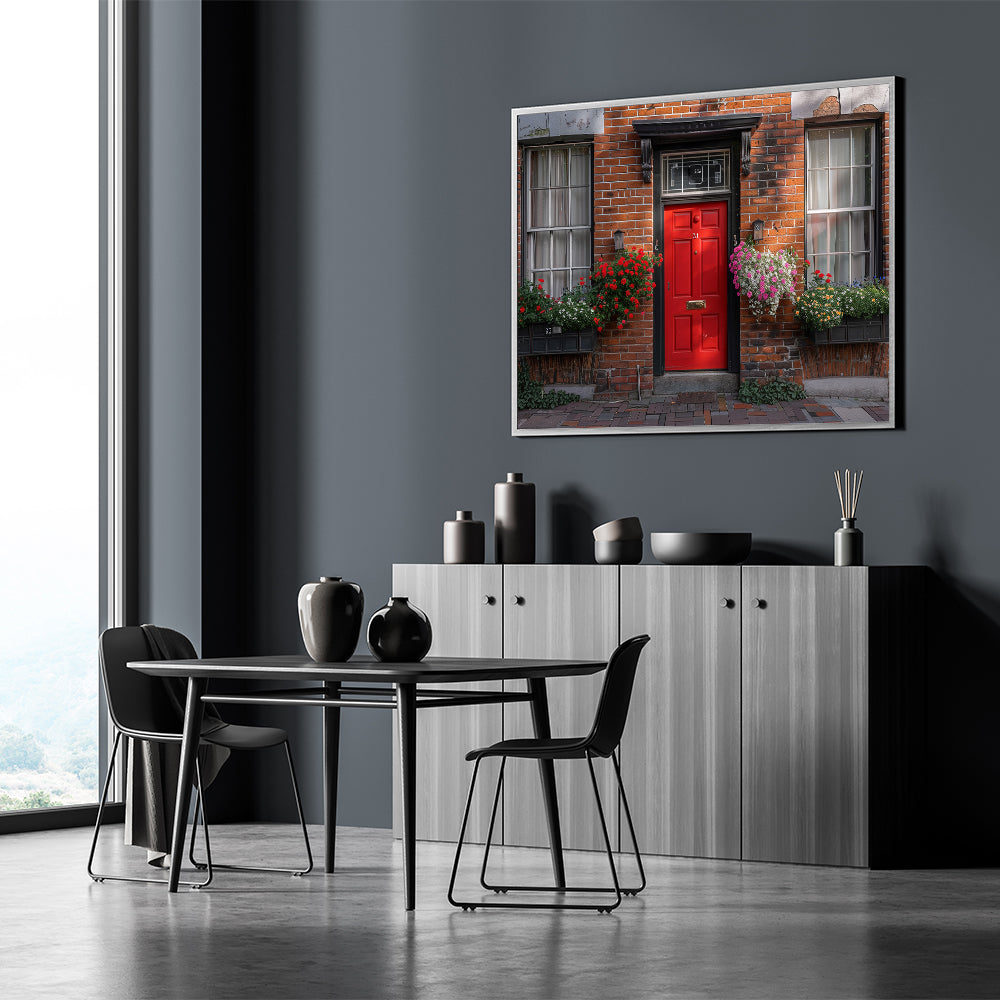 This "Red Door Wall Art" is ideal for adding a pop of color and a touch of classic charm to your living room, hallway, or office. It’s a perfect piece for those who love the timeless appeal of red doors and brick architecture.