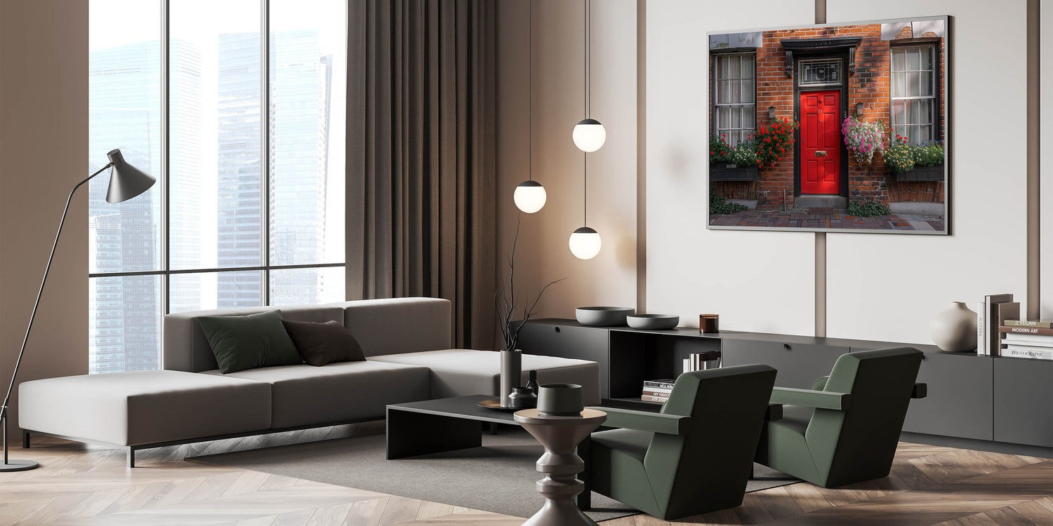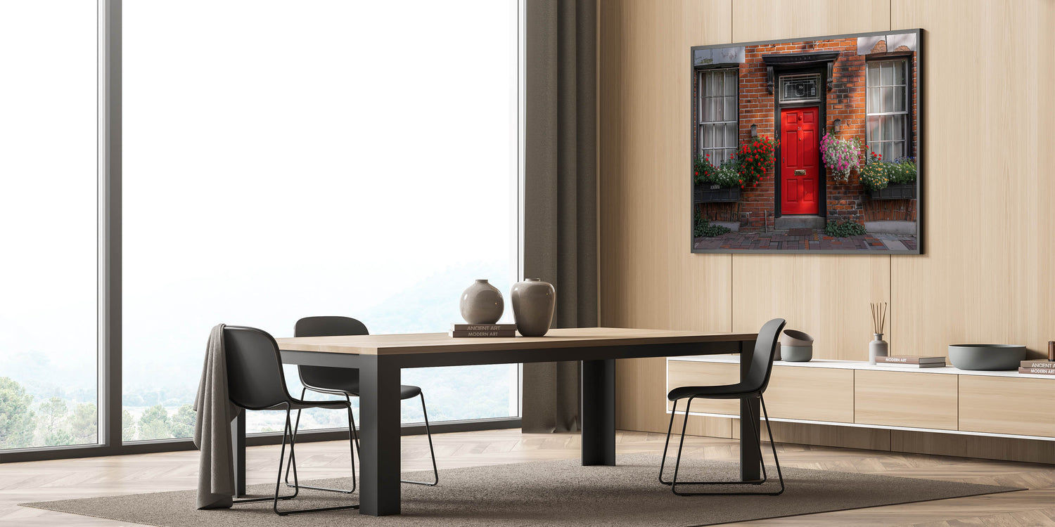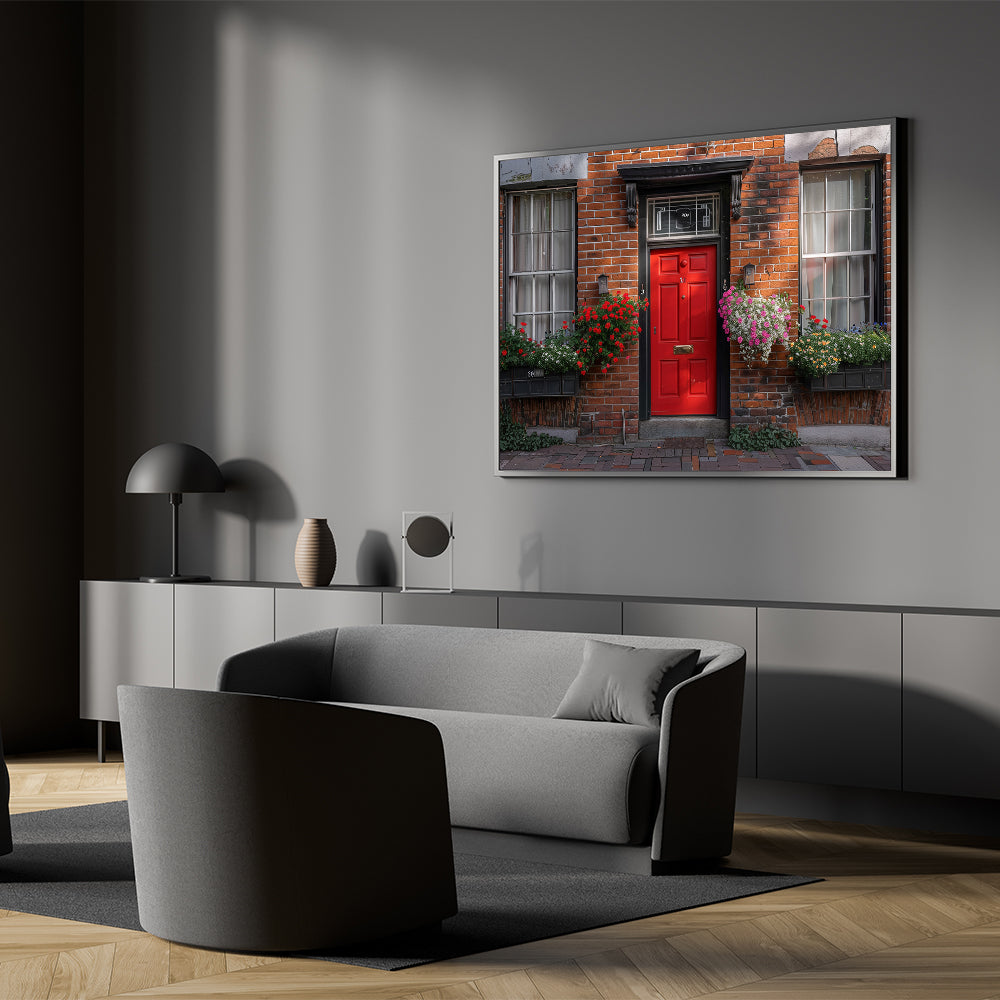 This "Red Door Wall Art" is ideal for adding a pop of color and a touch of classic charm to your living room, hallway, or office. It’s a perfect piece for those who love the timeless appeal of red doors and brick architecture.