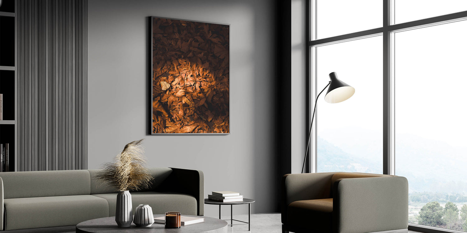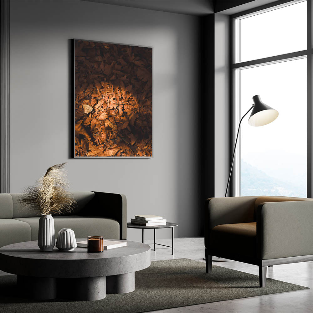 Celebrate the warmth of autumn with this Fall Wall Art, featuring a close-up of crisp, golden-brown leaves scattered across the forest floor. The rich textures and warm hues of this Autumn Wall Art create a cozy, rustic ambiance, perfect for seasonal or year-round décor.