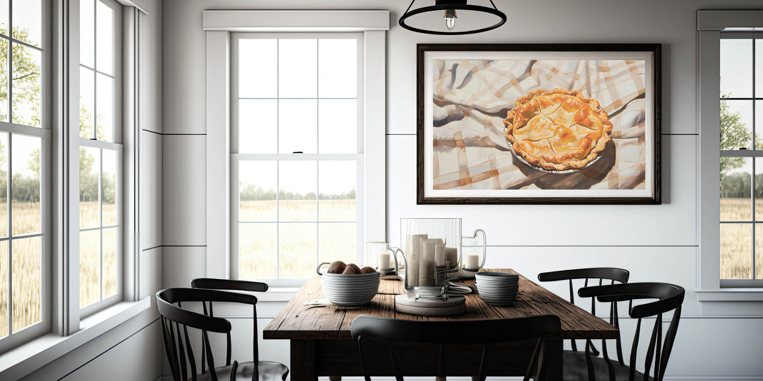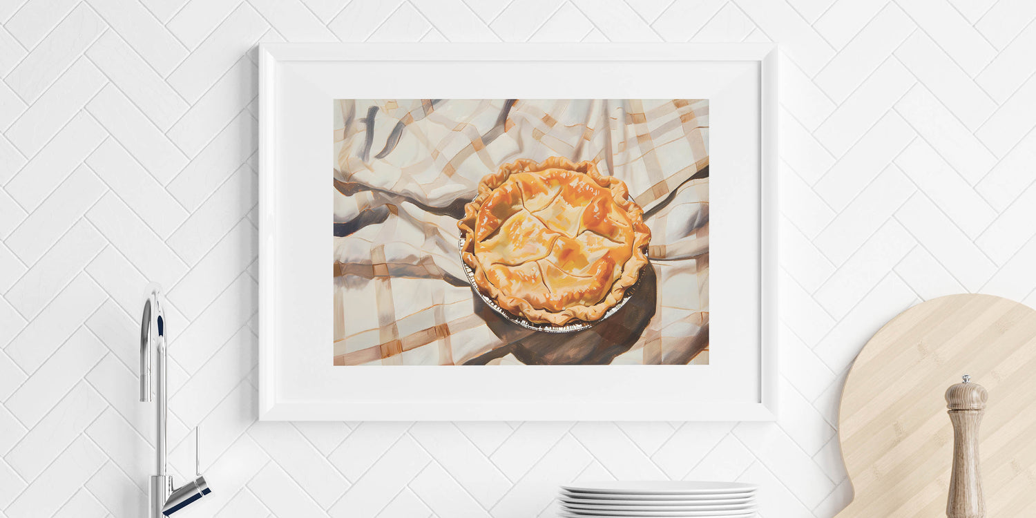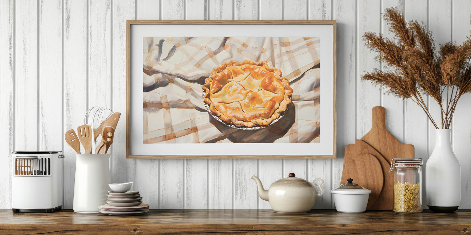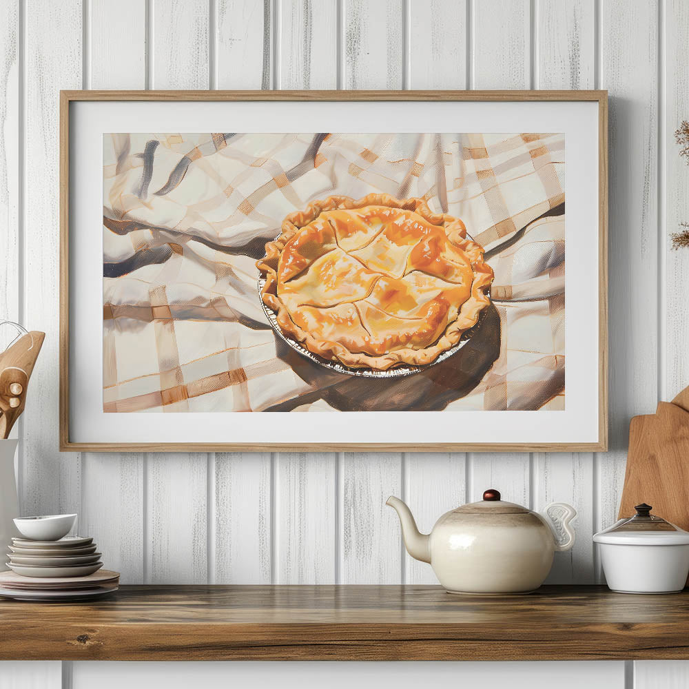 - Stunning pastry wall art showcasing a freshly baked apple pie.