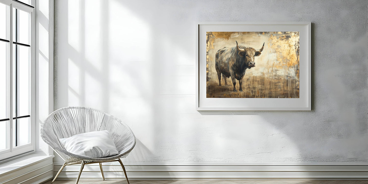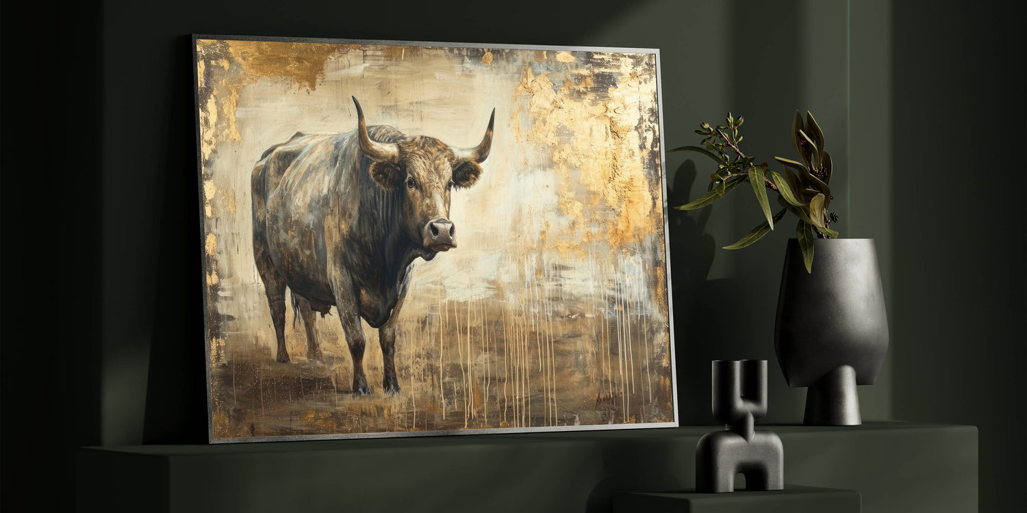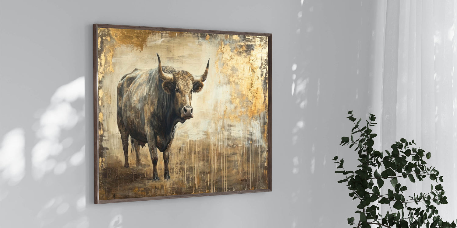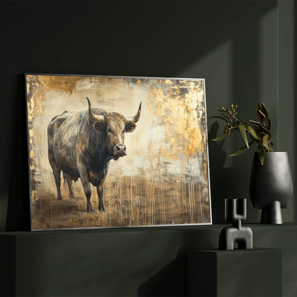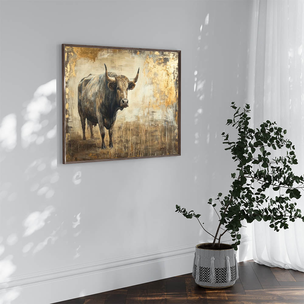 Bring a touch of the wild with a luxurious twist into your home with this Rustic Bull canvas print. Whether as a statement piece or part of a curated collection, this artwork will add warmth and sophistication to any room.