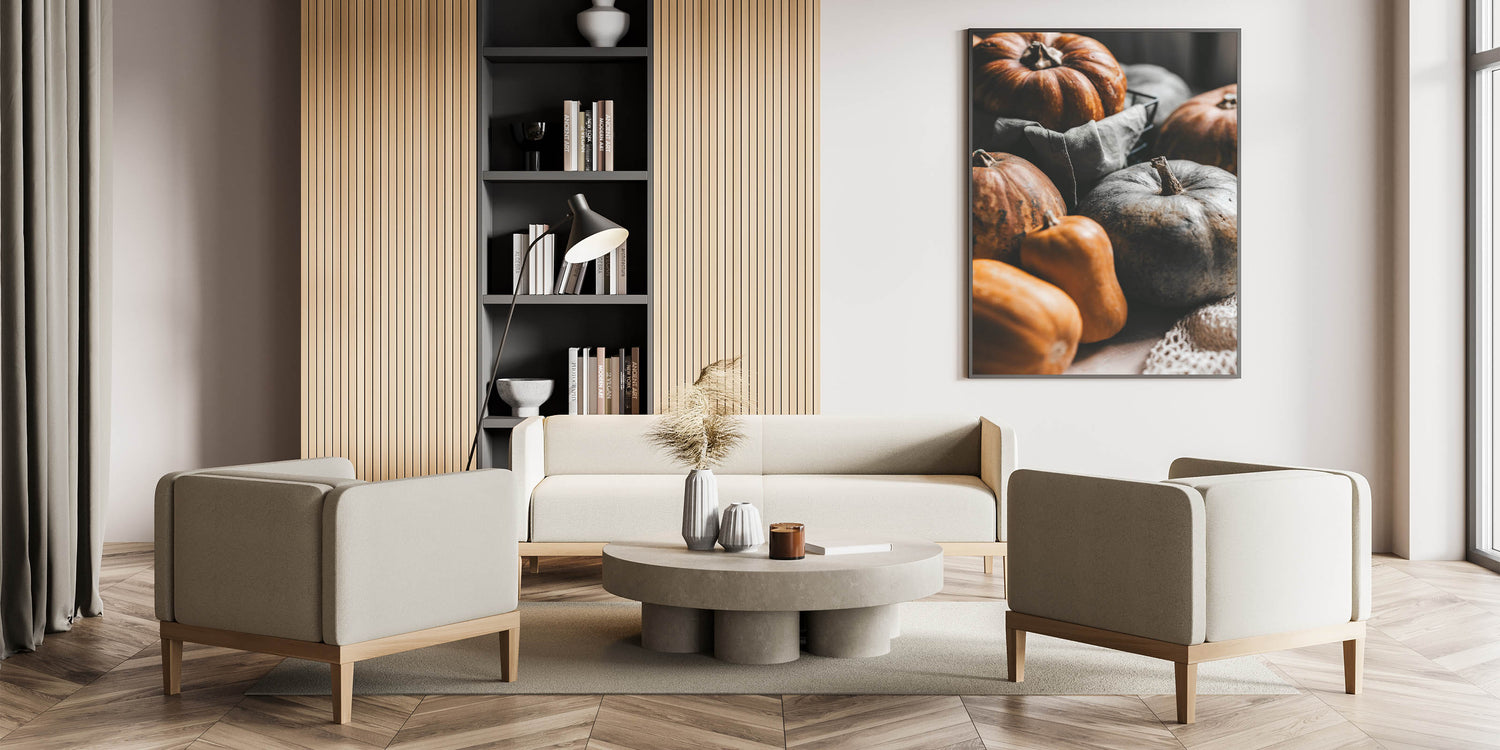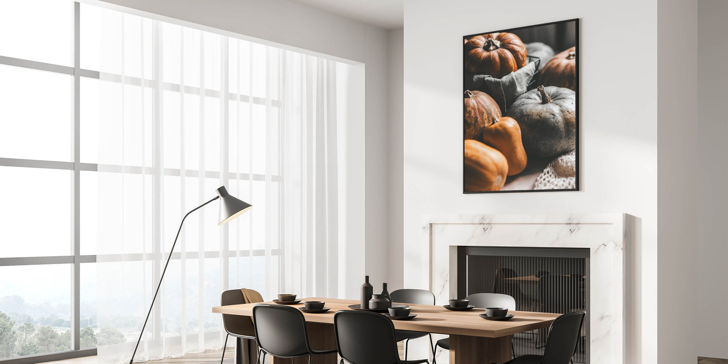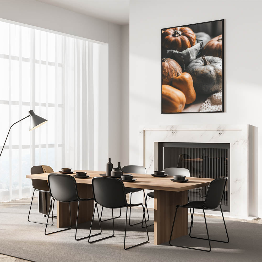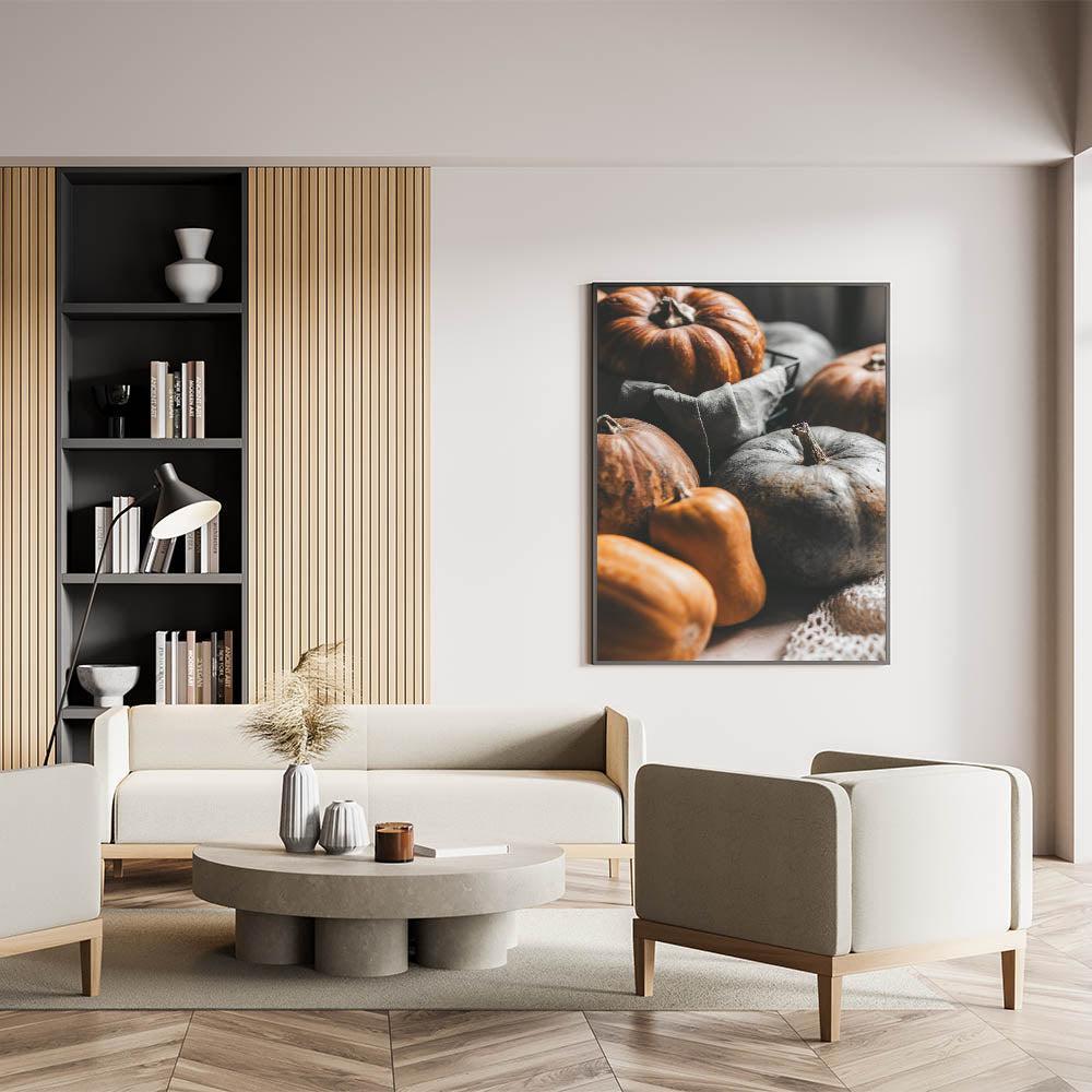 Celebrate the warmth of the harvest season with this Fall Wall Art, featuring a stunning still life of rustic pumpkins in earthy orange and gray tones. The natural textures and soft lighting create a cozy autumn ambiance, making this Autumn Wall Art a beautiful addition to seasonal or farmhouse décor.