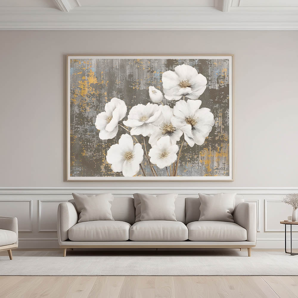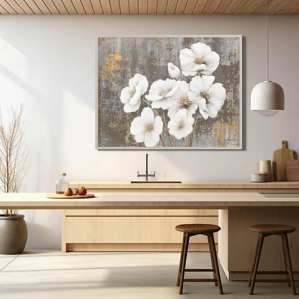 Add a touch of rustic charm to your space with this exquisite Rustic Warmth Floral Strokes & Lines Abstract Art. This artwork beautifully combines the delicate elegance of white blossoms with a textured background of warm, earthy tones. The subtle strokes and abstract lines create a harmonious blend of modern and traditional aesthetics, making it a perfect addition to any room that seeks to balance sophistication with a cozy, welcoming atmosphere.